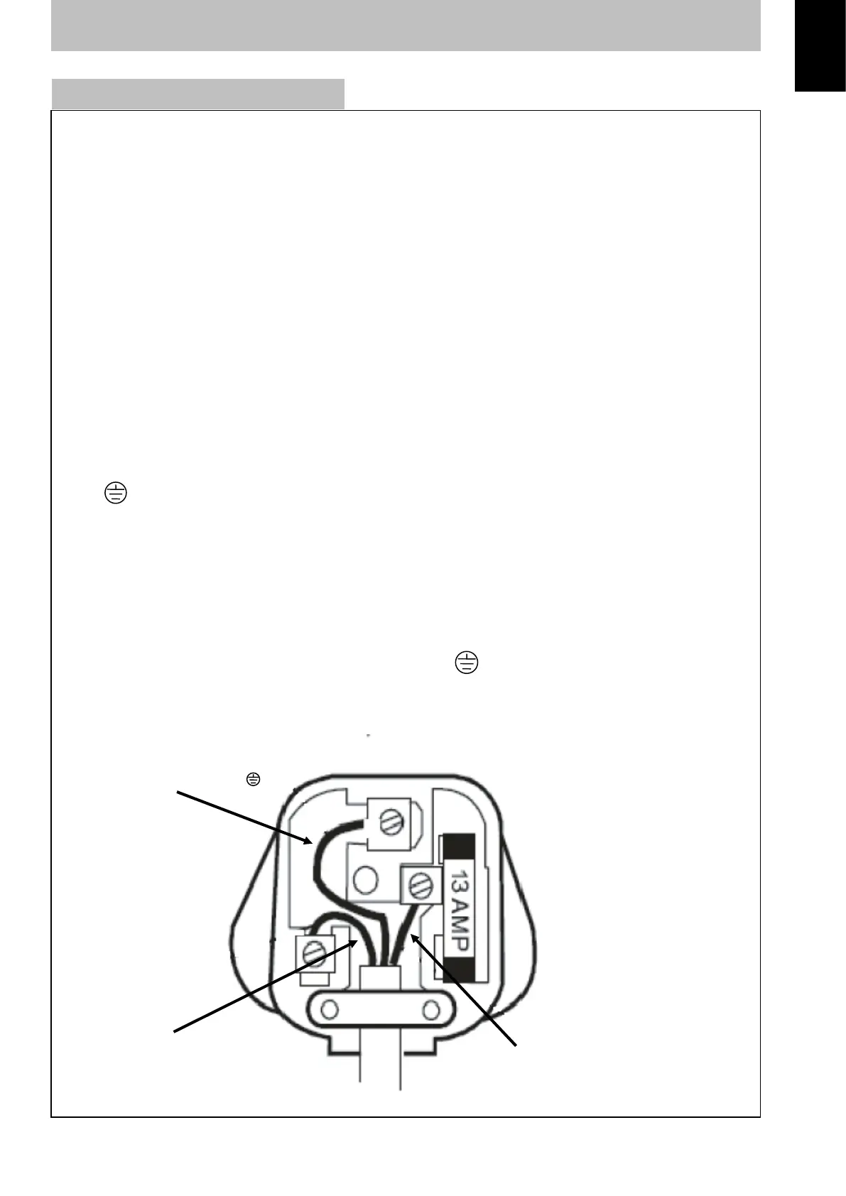 If a 13A (BS 1363) fused plug is used it must be ed with a 13A fuse. If in doubt consult a