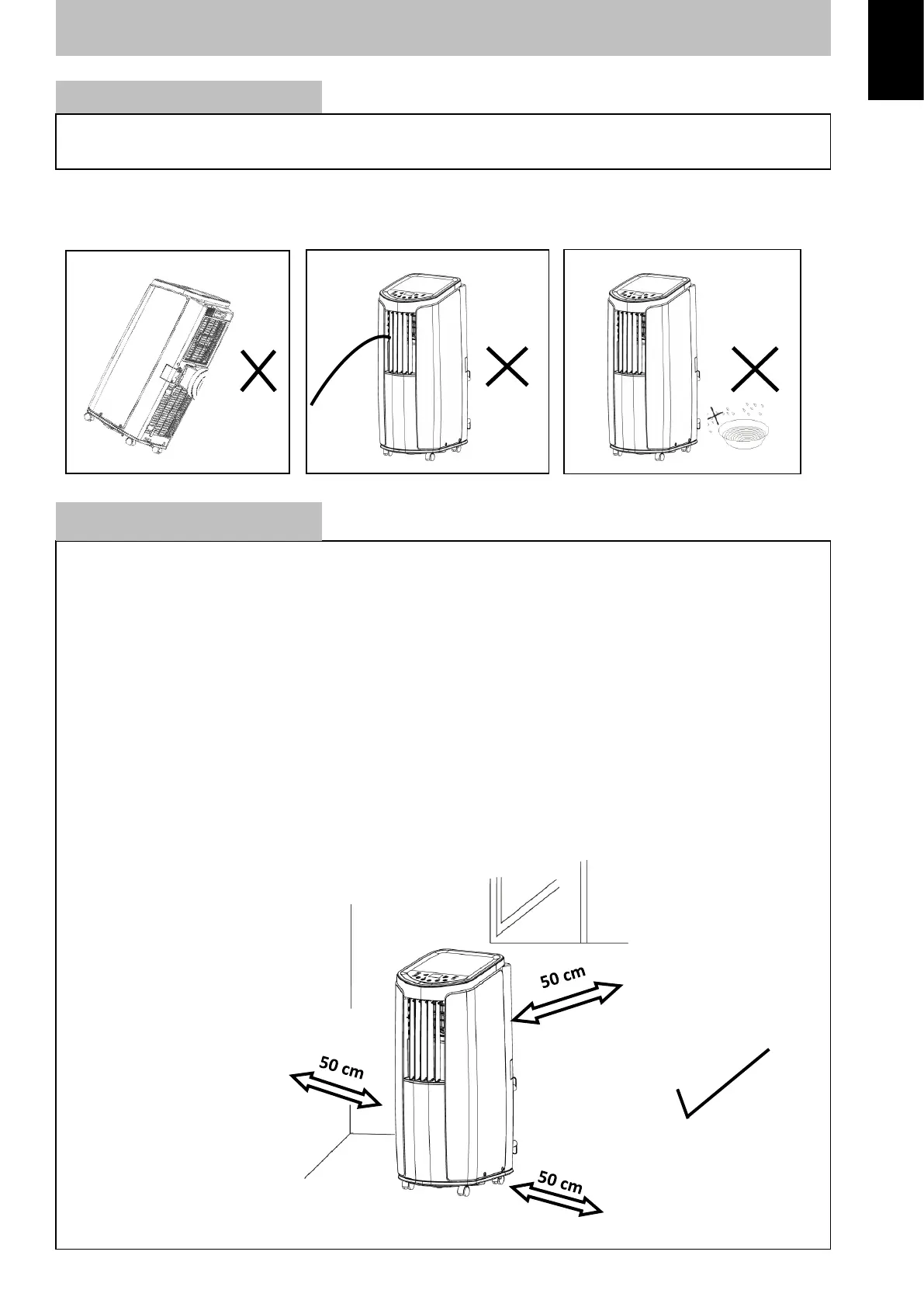 Allow at least 50cm of air space on all sides of the appliance for good venlaon to avoid over-