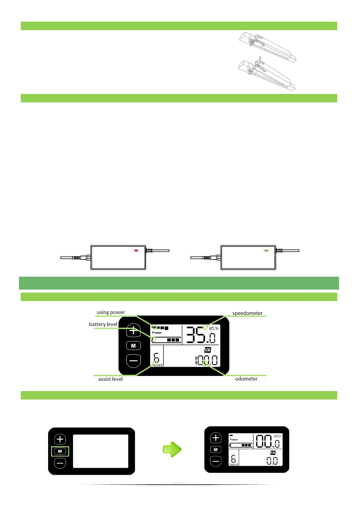 To turn on the display press and hold “M” for 3 seconds. To turn off the display press and