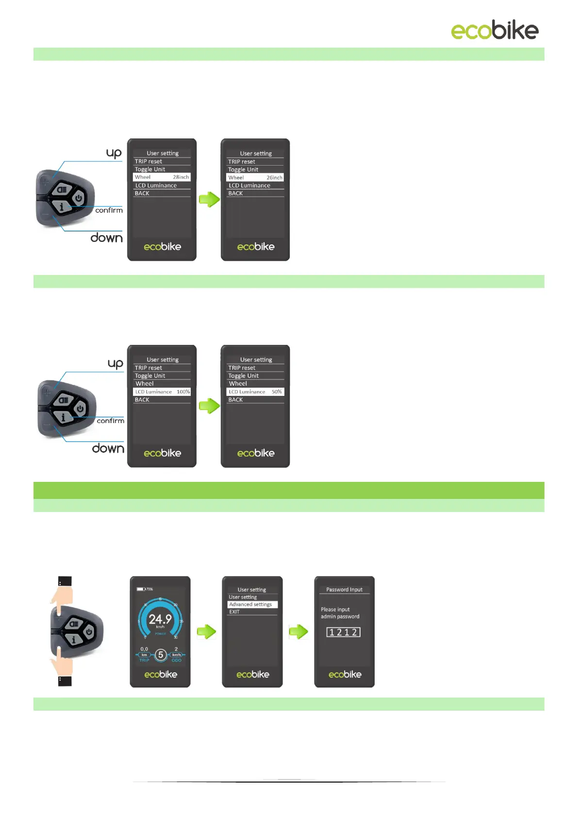 To enter the advanced settings of the display press and hold the "PLUS" and "MINUS"