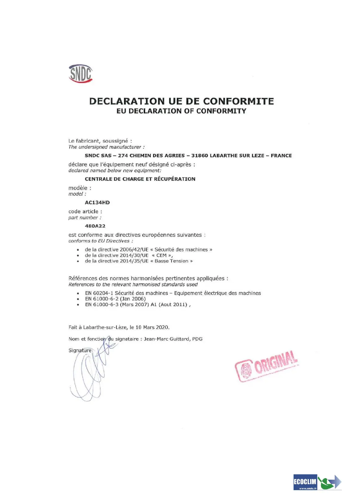 ECOCLIM AC134HD - Page 3