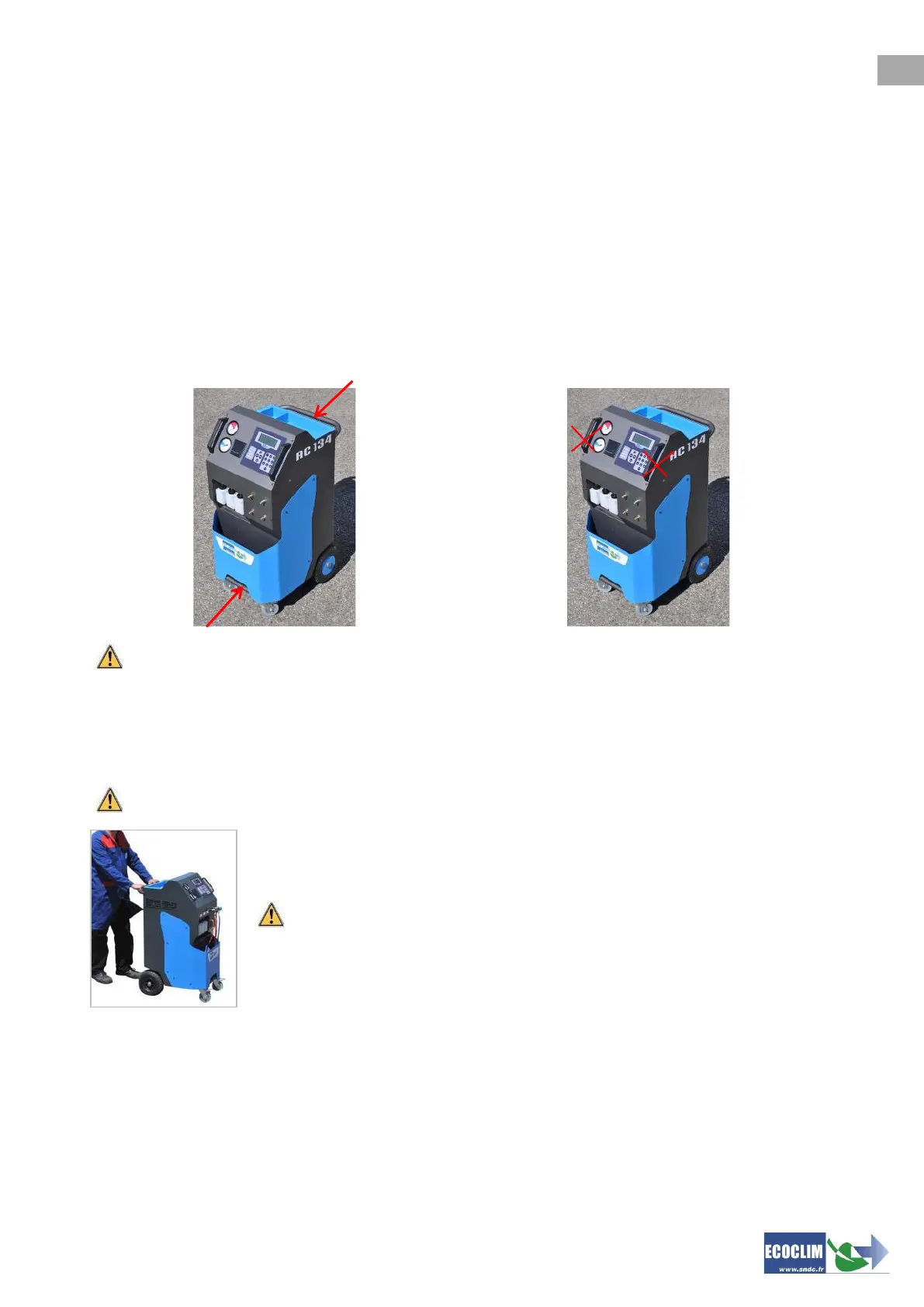 Take the unit off its packing platform using the back handle and front lift bar. Do not lift it alone!