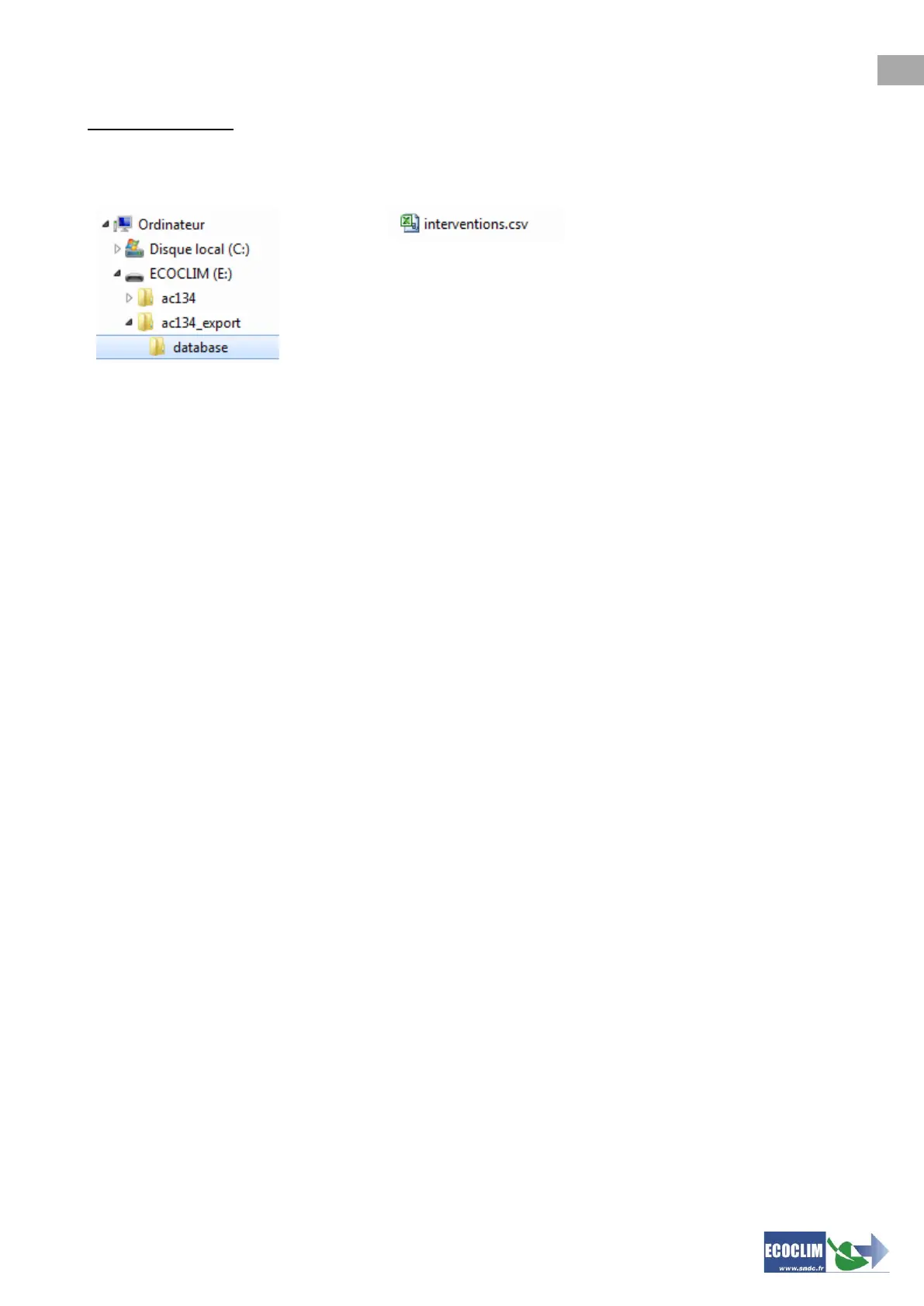 From the explorer, navigate to the directory ac134_export / database of the USB drive.