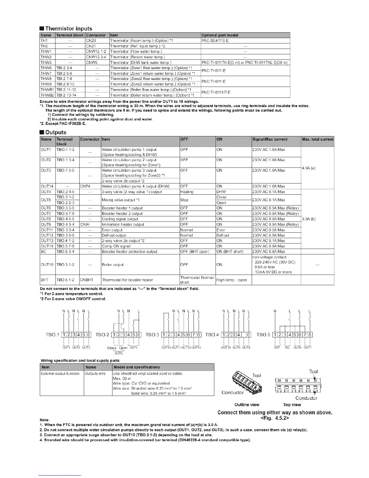Ecodan 150 Standard - Top View; Thermistor Inputs; Outline View; Outputs