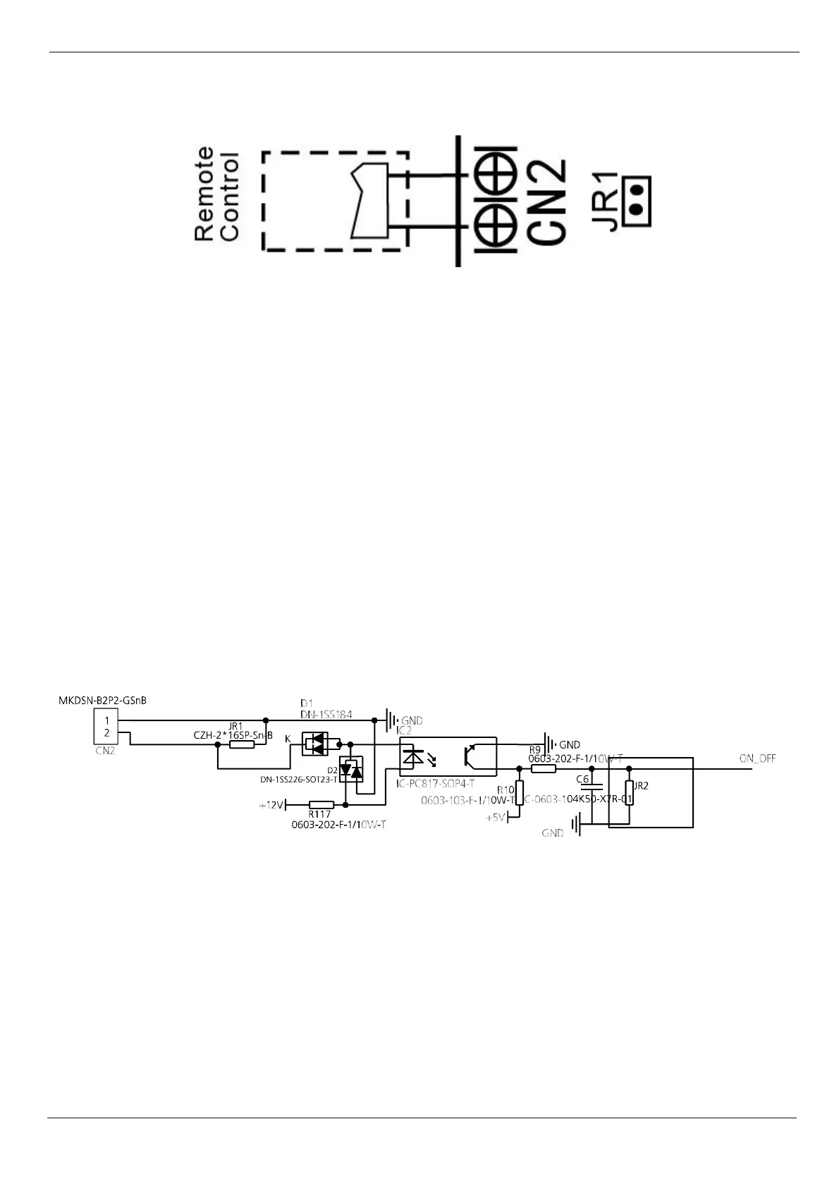 B. For remote control (ON-OFF) terminal port CN2 and short connector of JR1