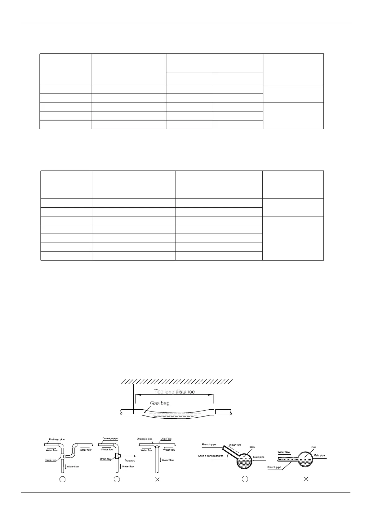 • The drainage pipe of the indoor unit with water pump should be apart from the one without water pump.