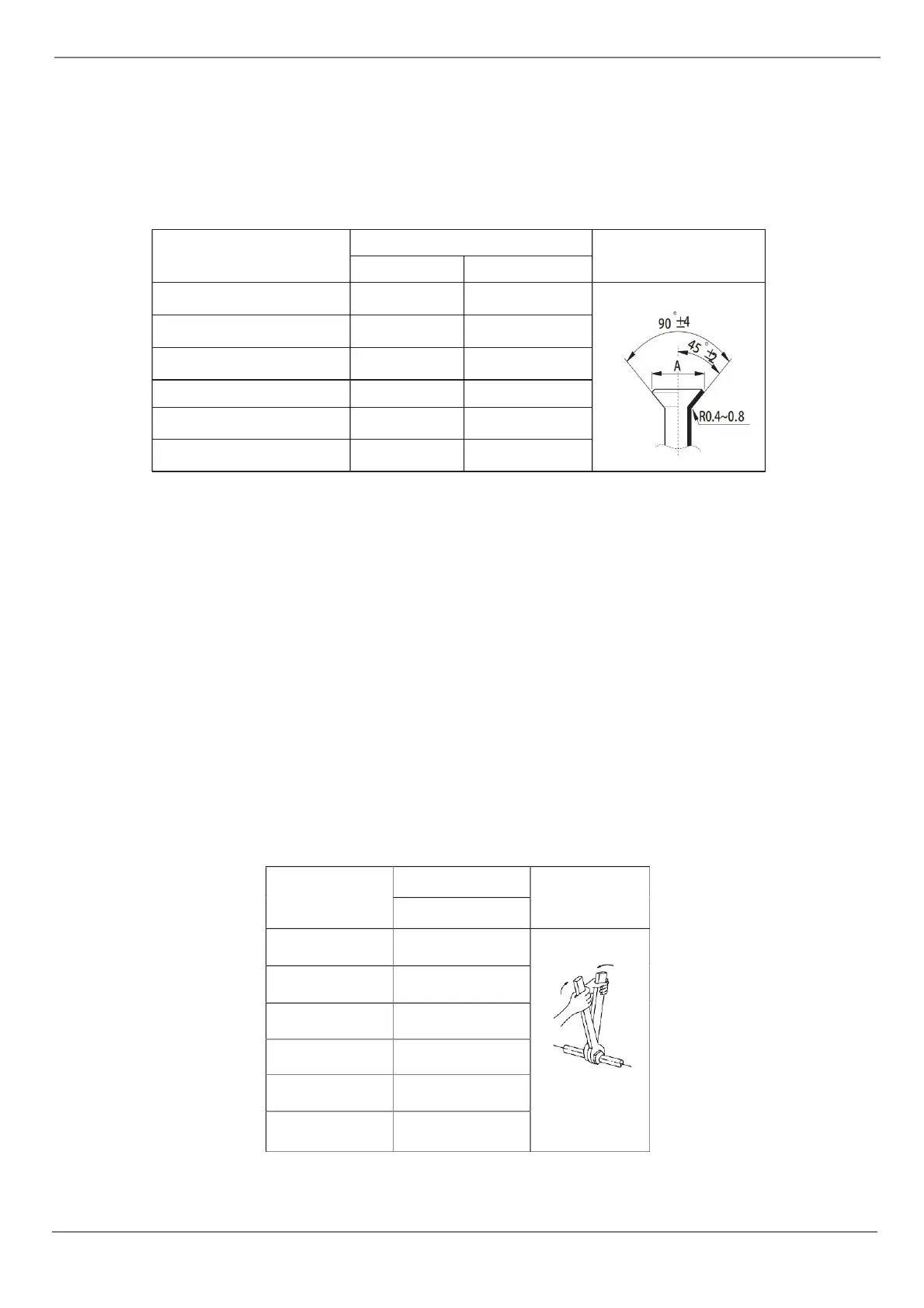 • According to the following table to flare the pipe.