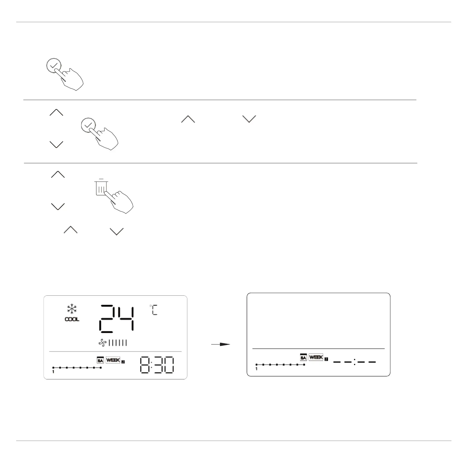 During the weekly timer setting, press CONFIRM.