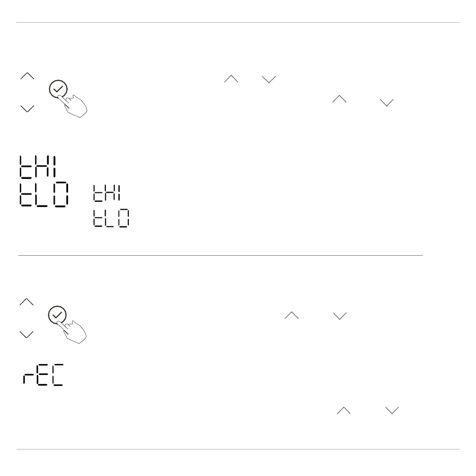 of temperature, press“ ”or“ ”to select tHI or tLo.