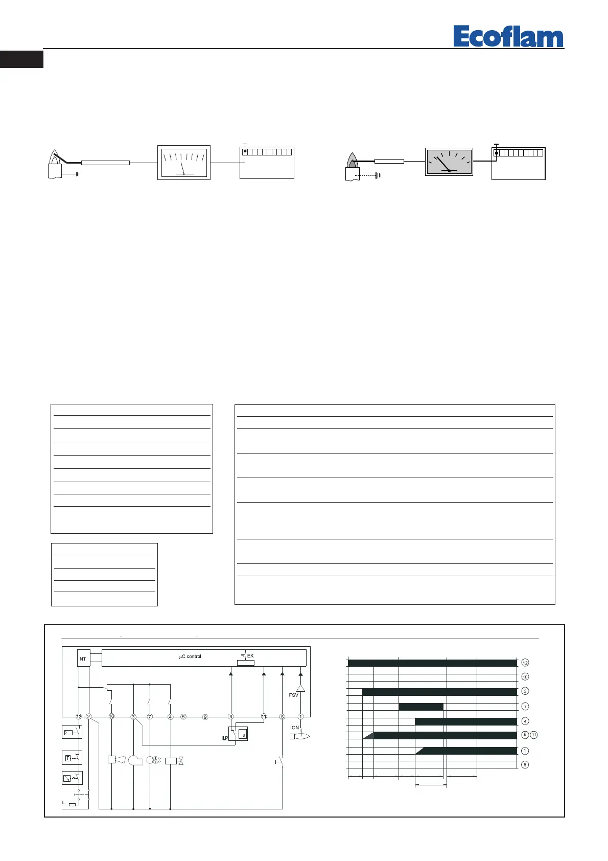Avec le brûleur éteint, brancher un microamperomètre à courante continue et échelle 0÷50 ou 0÷100 µA.
