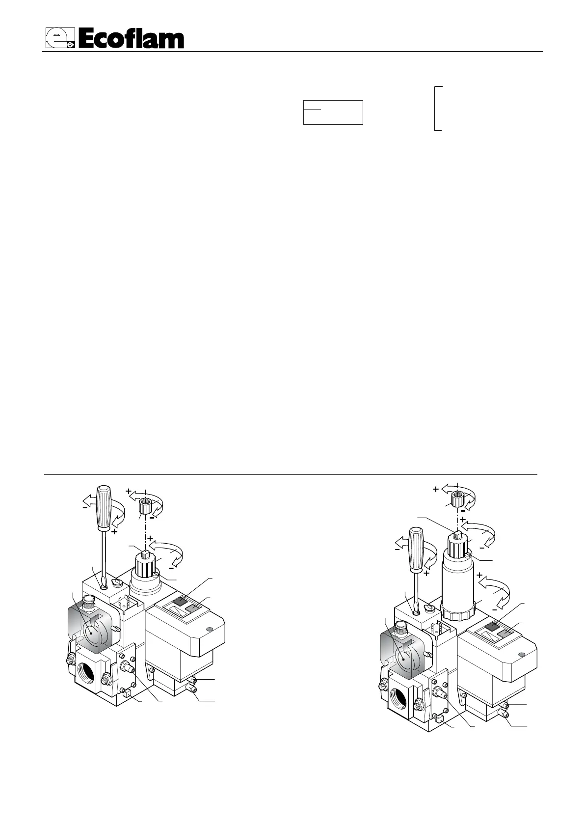 ta:3,6÷20 mbar. Tra la pressione minima e massima in uscita vi sono circa 60 giri della vite di regolazione. Lo stabilizzatore è rego-