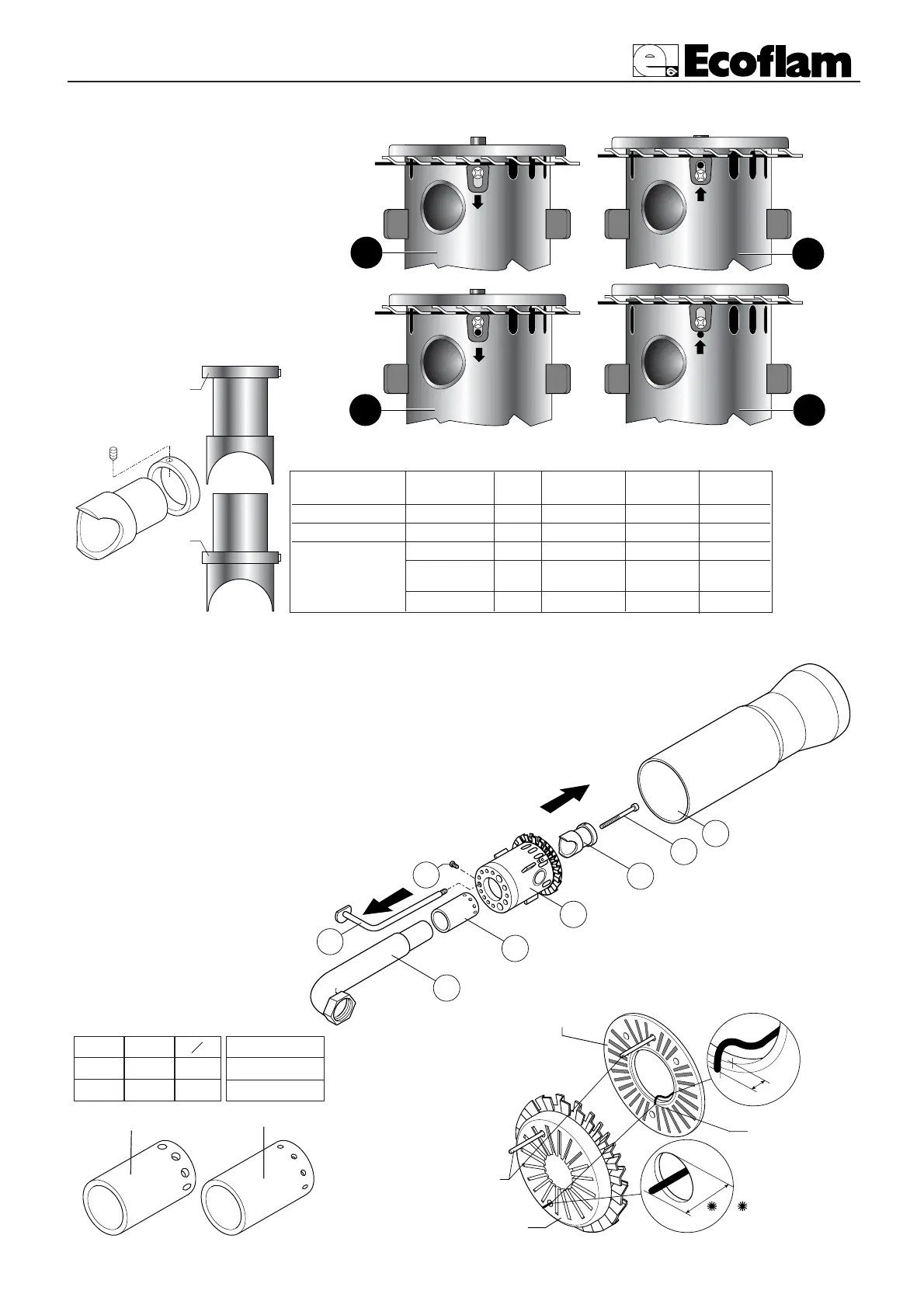 To modify the burner from Natural gas into L.P.G. and viceversa, proceed as follows: - remove the blast tube A