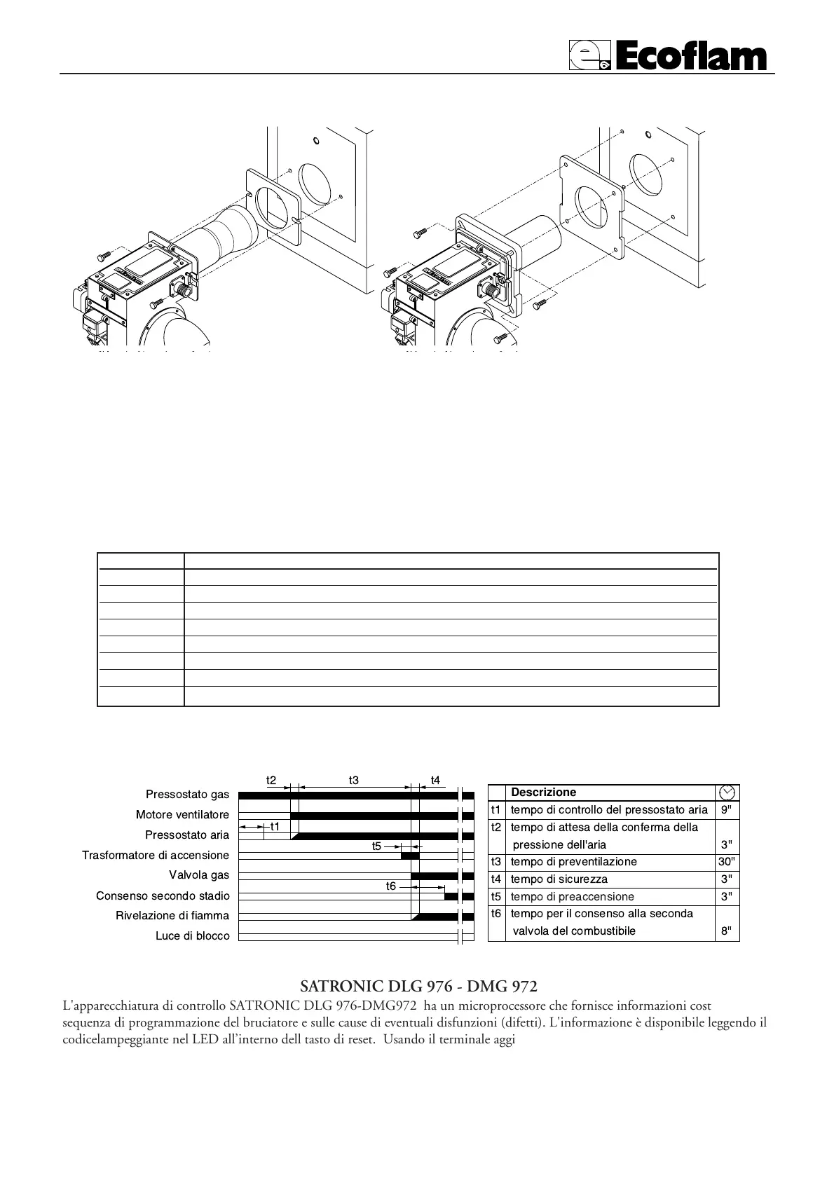 mento é controllato tramite il pressostato aria. Al termine della preventilazione, viene inserito il trasformatore di accensione e
