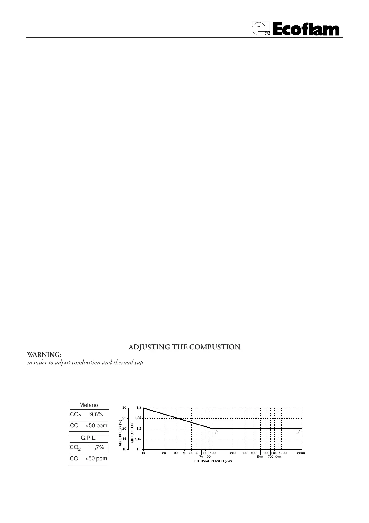 Combustion and thermal capacity must be adjusted simultaneously, making sure that the values read are correct and in any