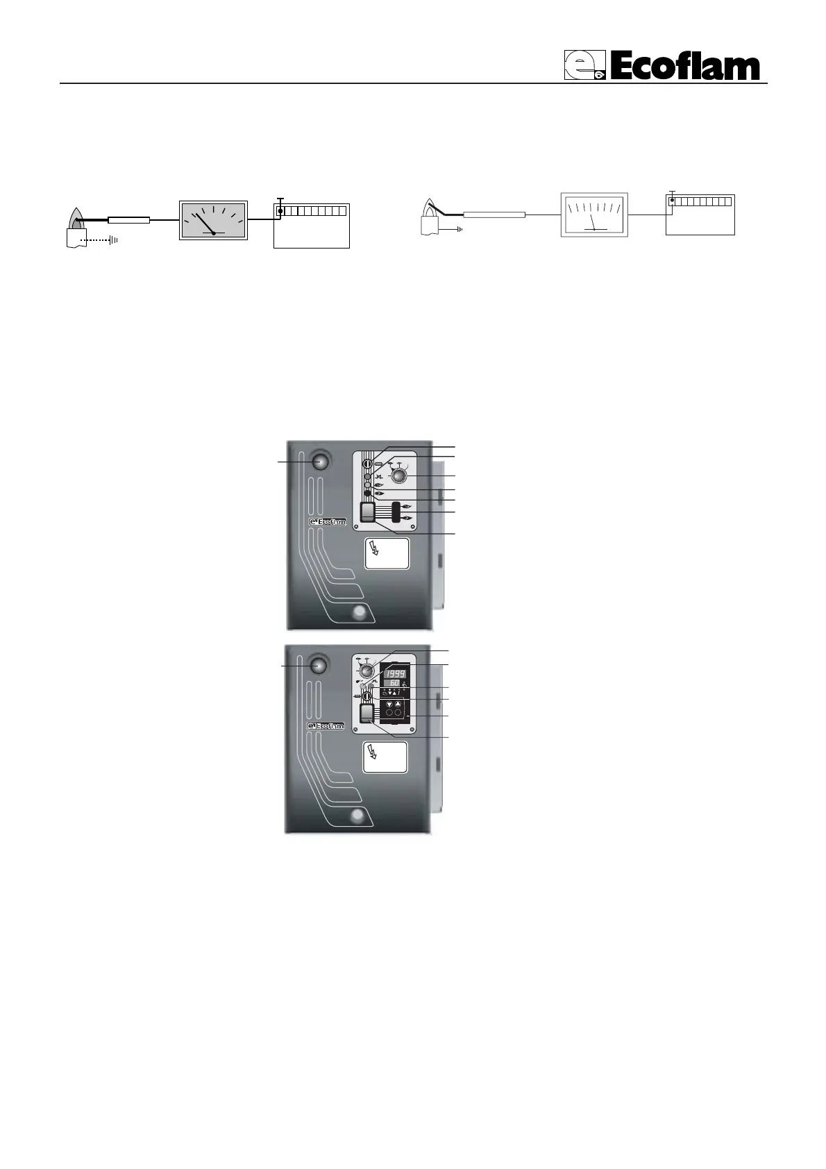 Avec le brûleur éteint, brancher un microamperomètre à courante continue et échelle 0÷50 ou 0÷100 µA.