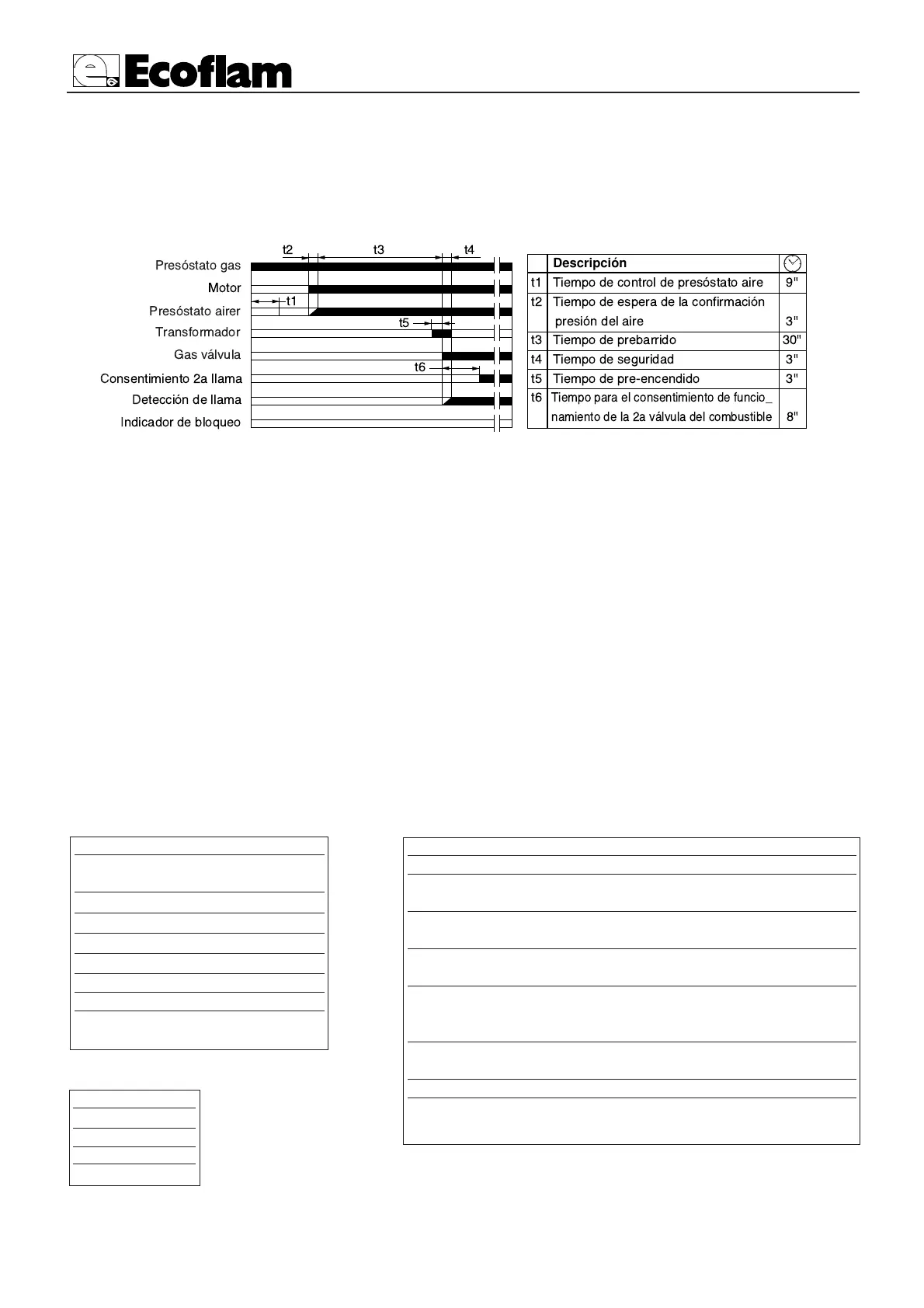 tiempo de seguridad bloqueo llama no producido