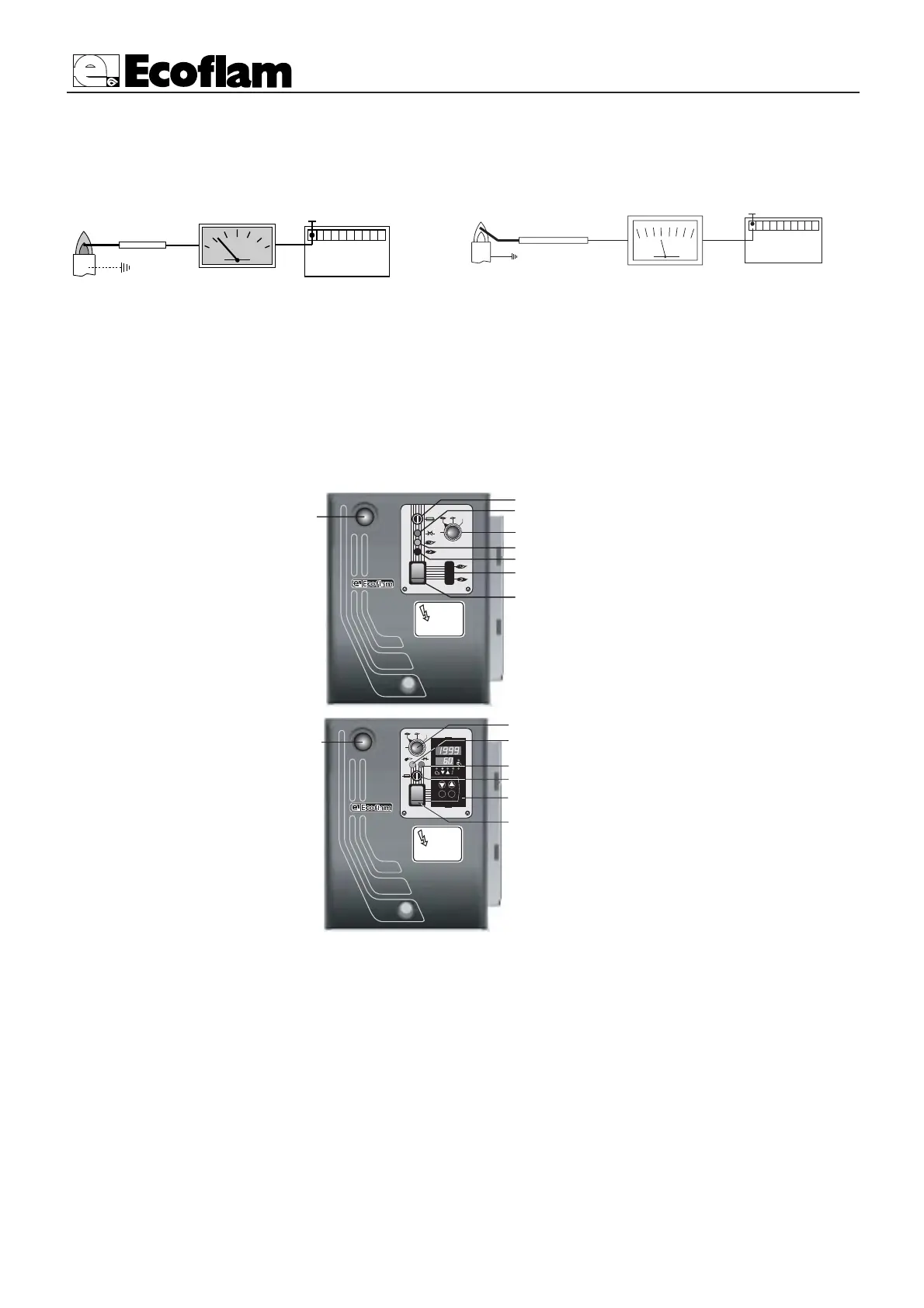Con el quemador apagado, conectar un microamperómetro en corriente continua y escala 0÷50 o 0÷100 µA.