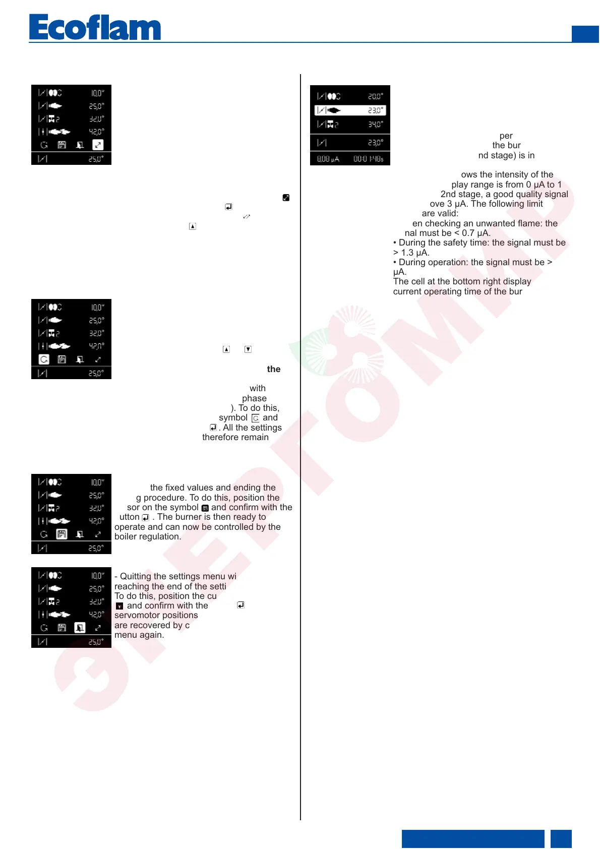 - Setting the flame - Operating mode