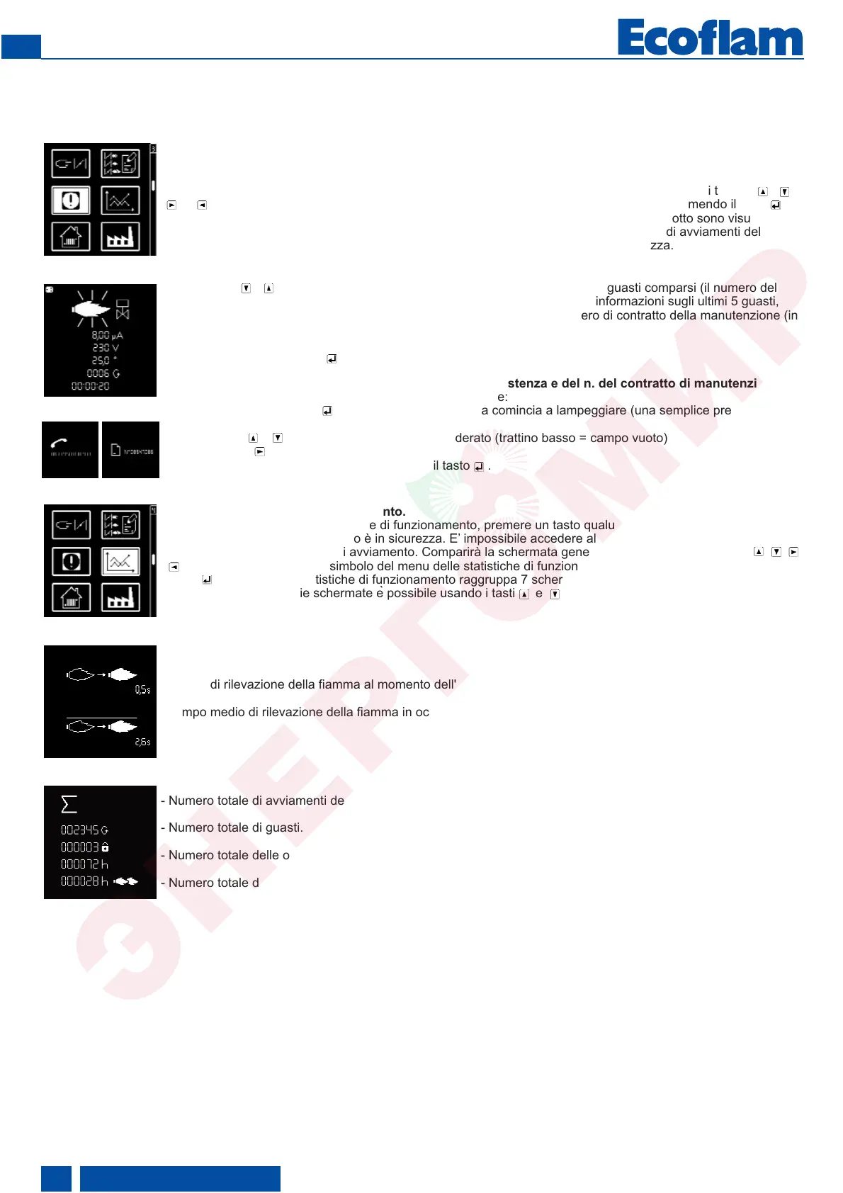 Per accedere al menu delle statistiche di funzionamento, premere un tasto qualunque quando il bruciatore è