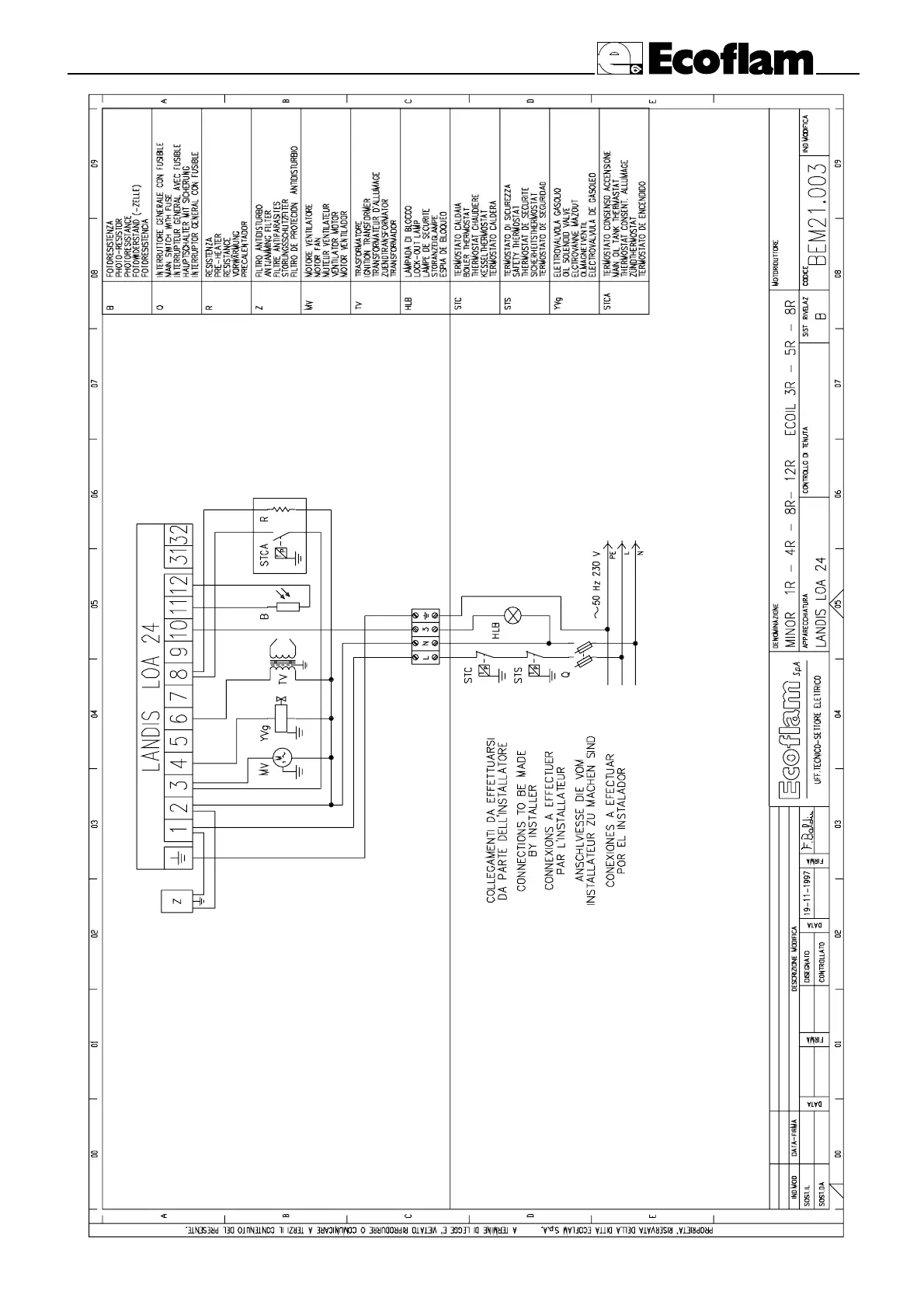Ecoflam MINOR 1.1 - WIRING DIAGRAM - BEM21.003; LANDIS LOA 24 Unit Connection Points