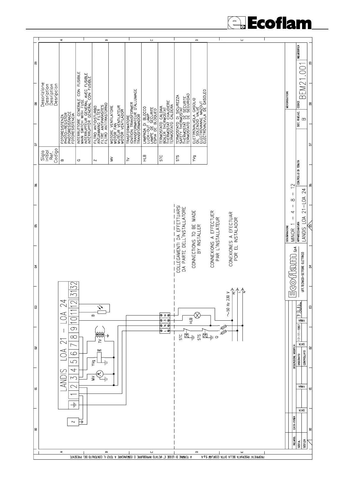 Ecoflam MINOR 4.1 - Installer Connections