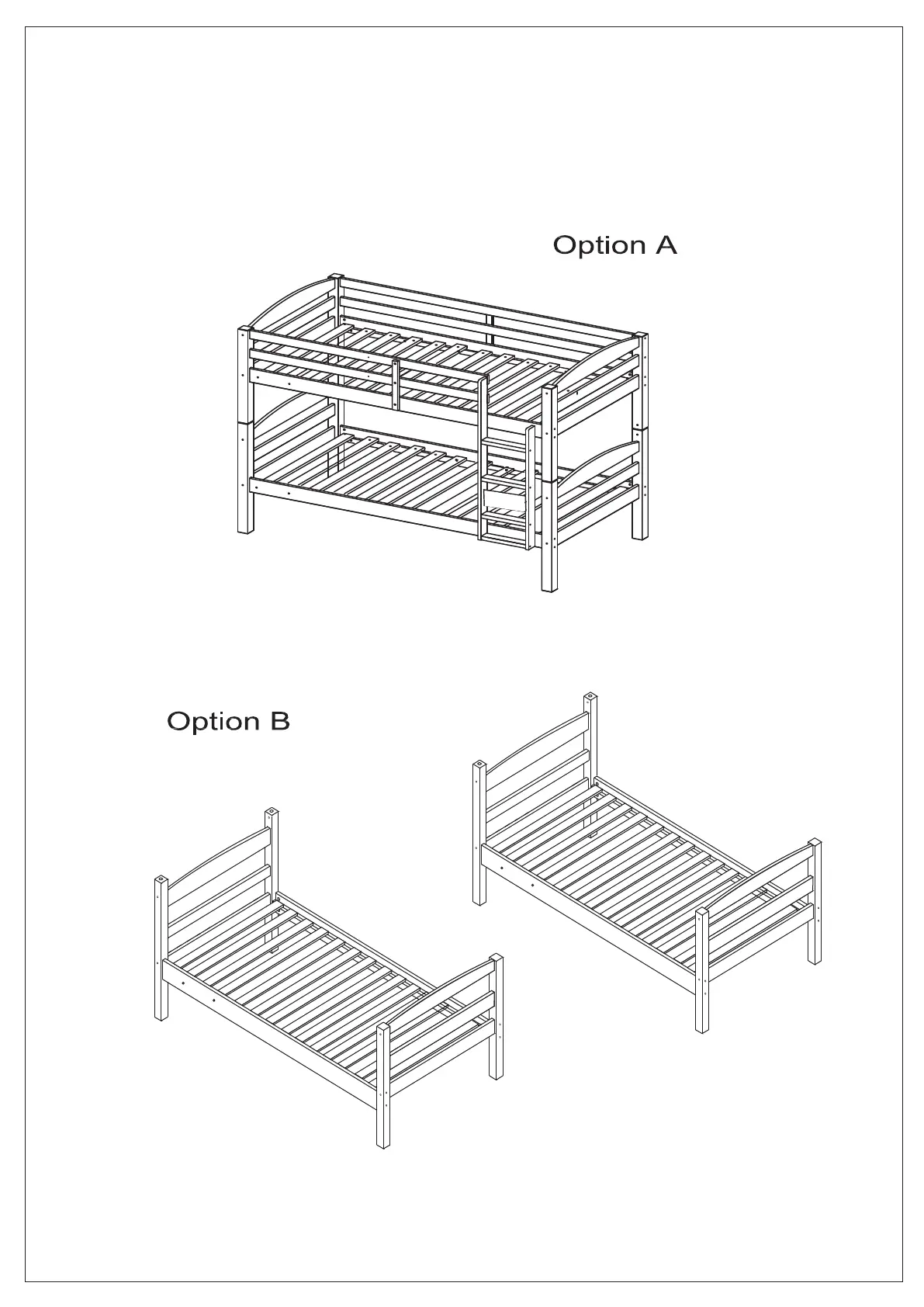 ECOFLEX T1203 - Assembly Options and Steps; Assembly Option A: Twin over Twin Bunk Bed; Assembly Option B: Conversion to Two Single Beds