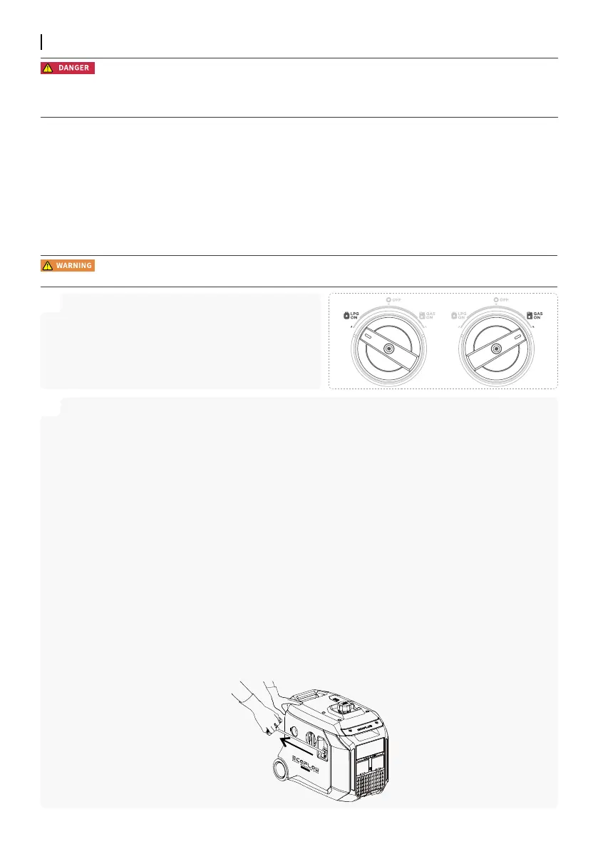 • Ensure the Engine Switch is properly aligned with the corresponding fuel position to prevent