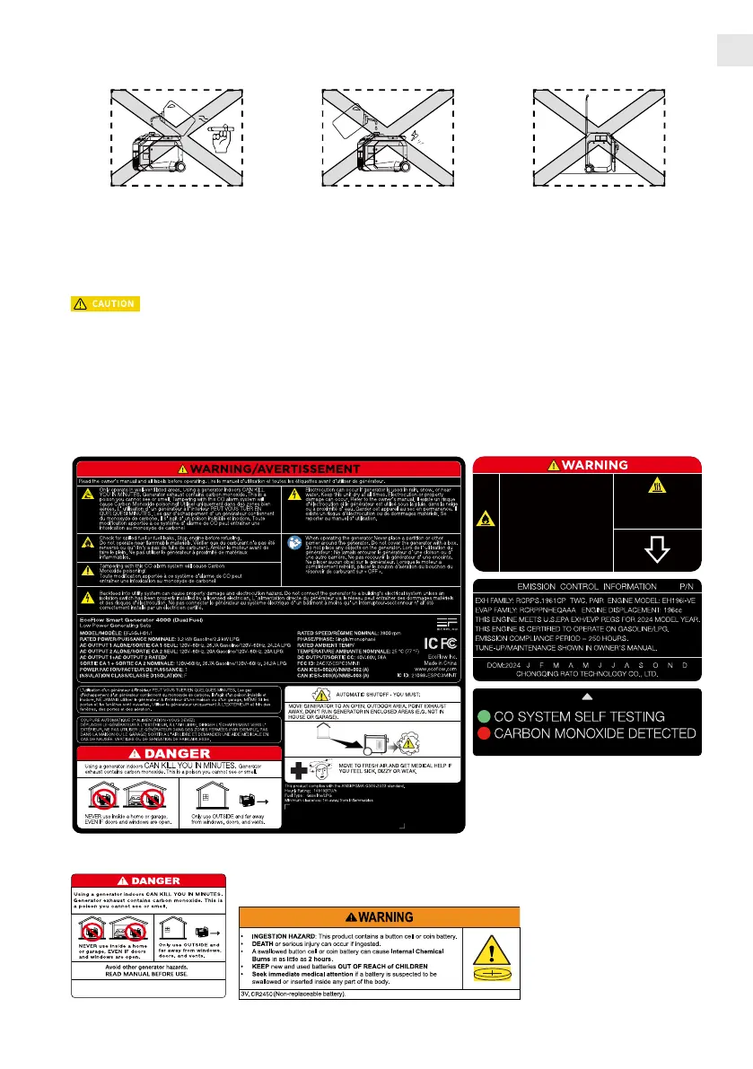 • Labels on the generator set: