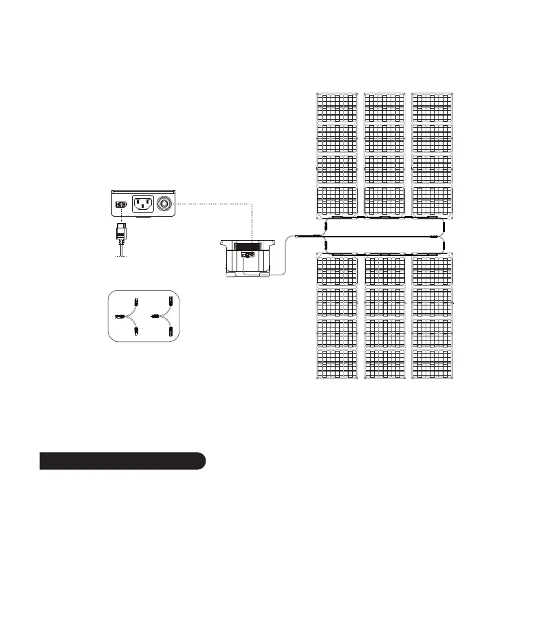en parallèle au port MC4 comme indiqué sur la figure. Si vous souhaitez connecter 6 panneaux solaires, vous pouvez les diviser en 2