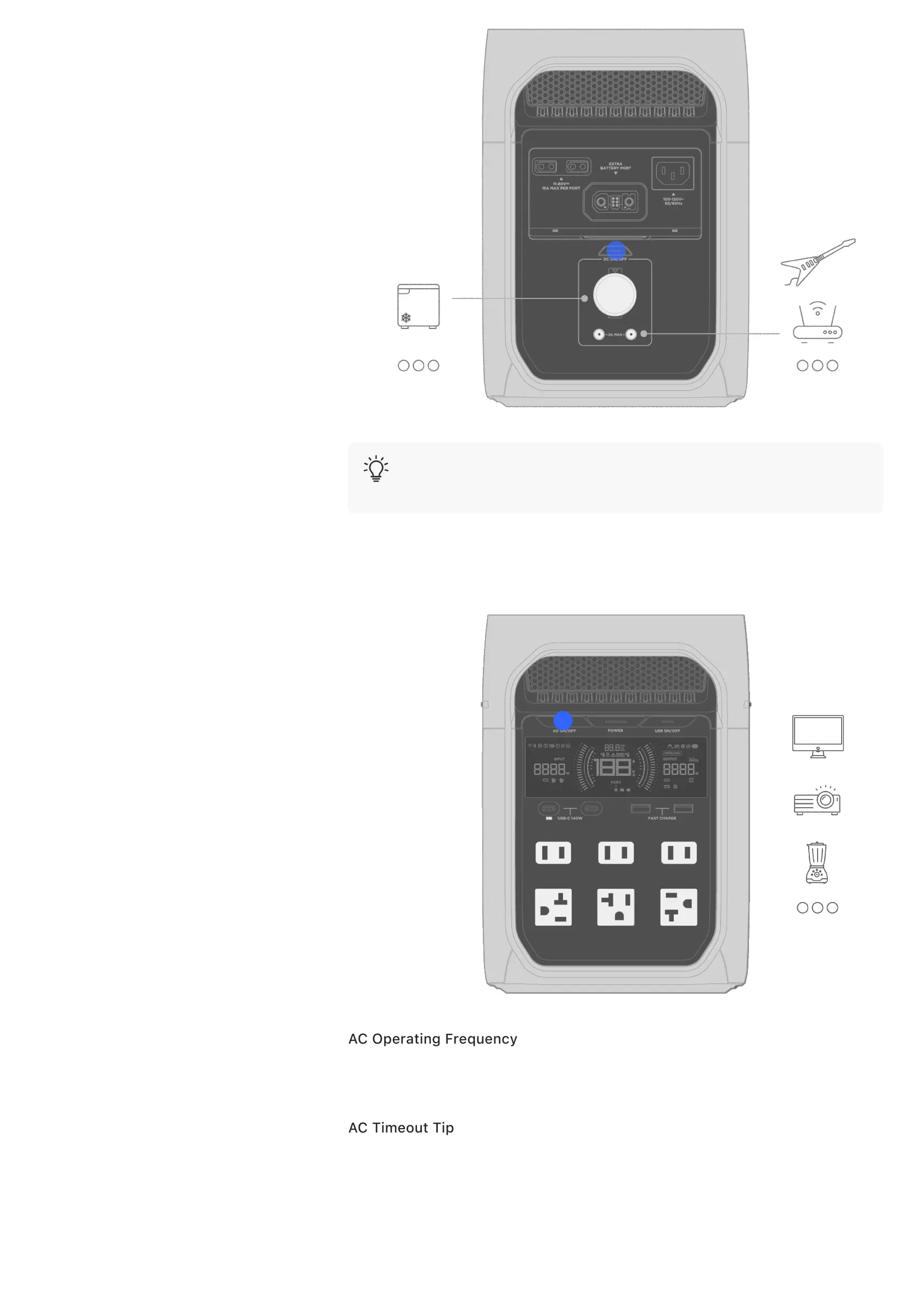 The AC output socket of the power station will automatically turn off if the port