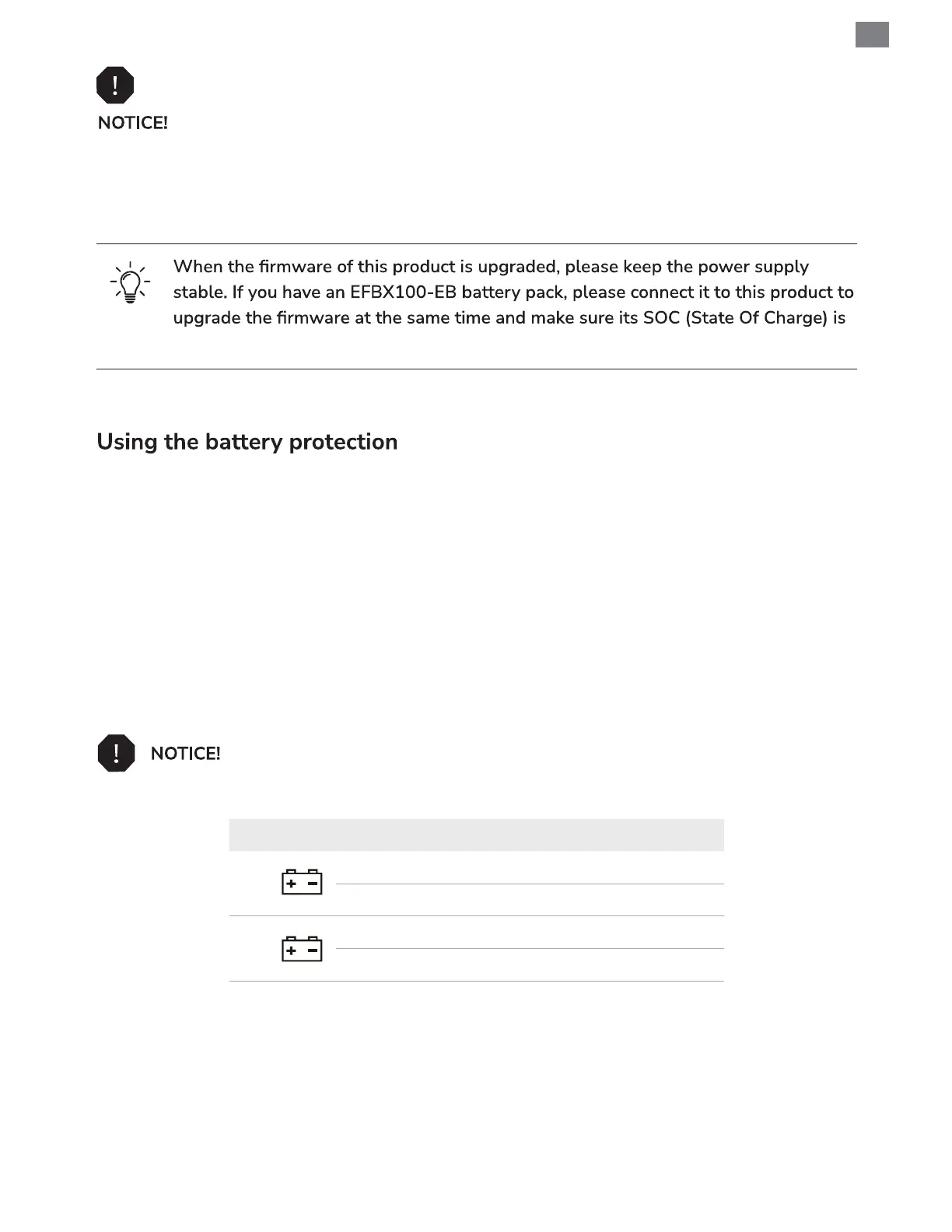 below the set value, the device will automatically switch to EFBX100-EB battery pack power