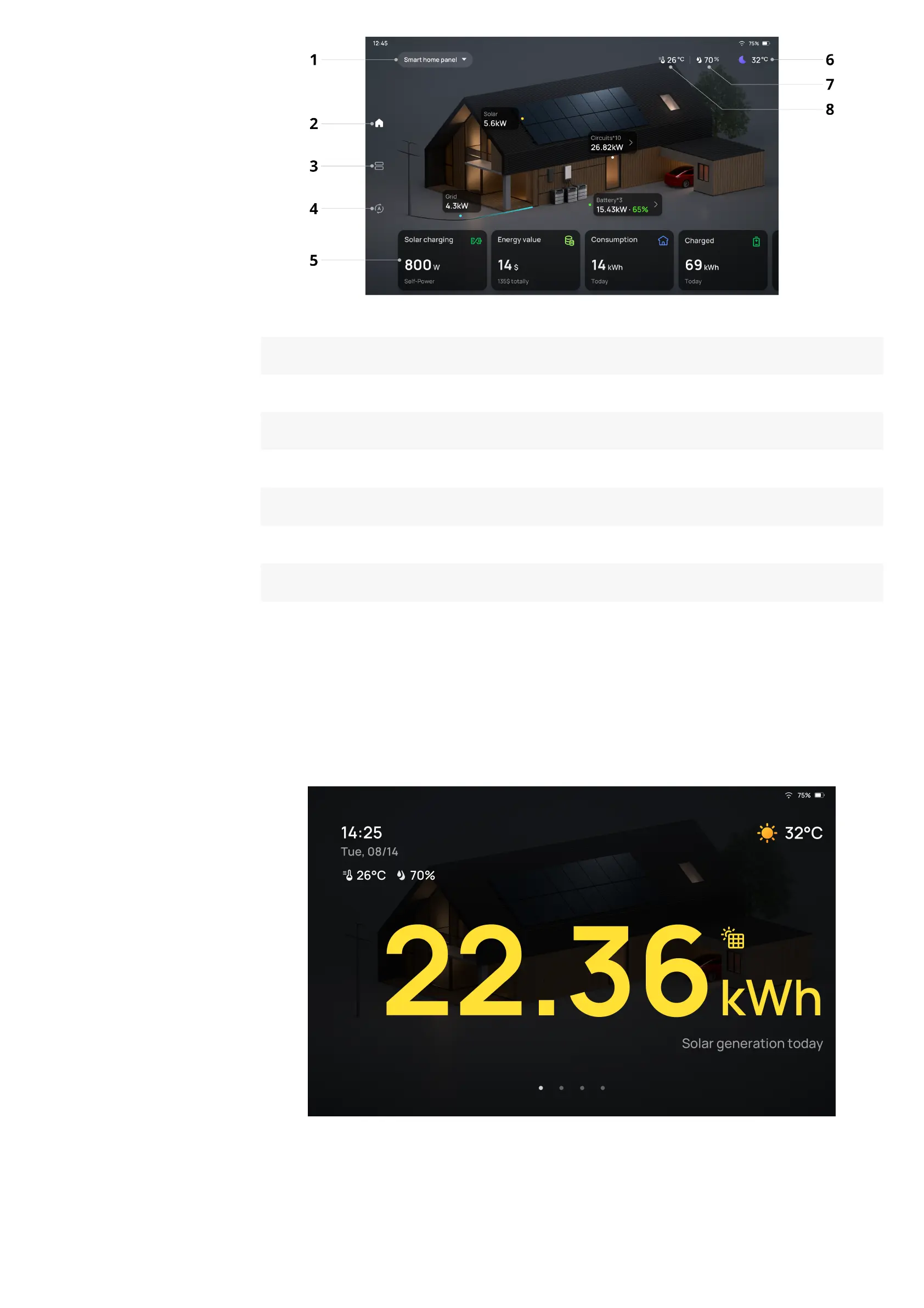 On standby, the screen saver displays temperature, humidity, time and energy data.