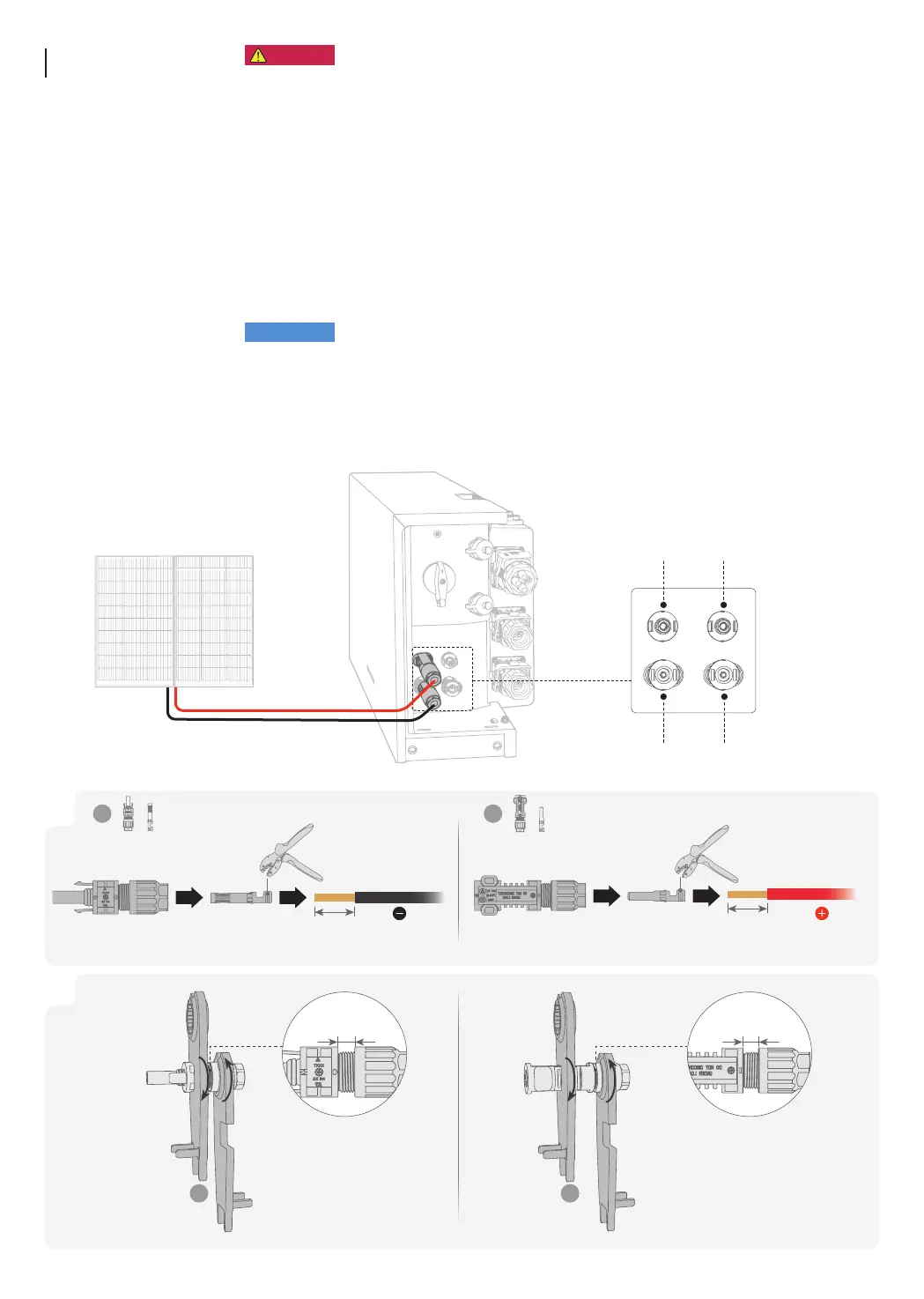 • Before connecting the PV input cables, ensure AC switch connected to the inverter and the