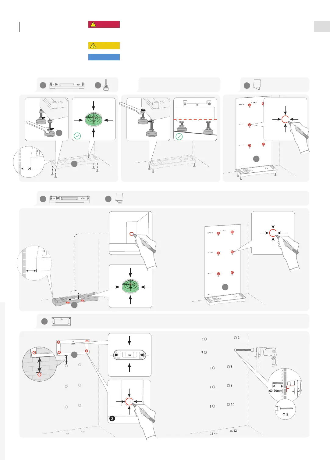 • When drilling holes, avoid the water pipes and power cables buried in the wall and under the floor.