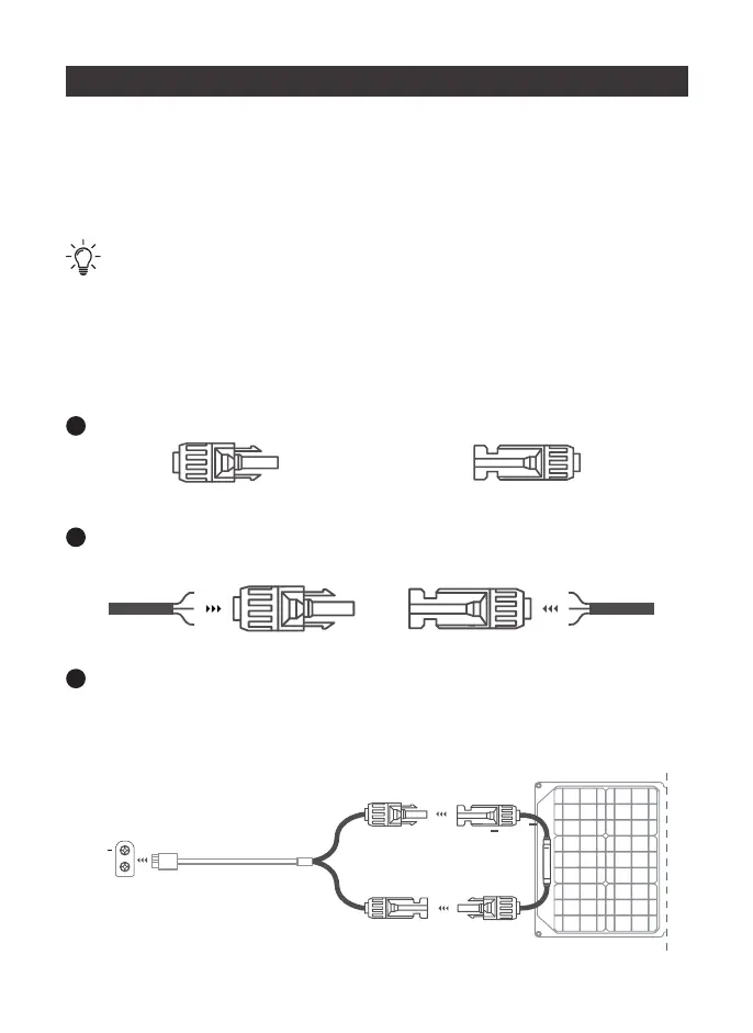 solar panel connects to the MC4 Male head and negative pole to the MC4