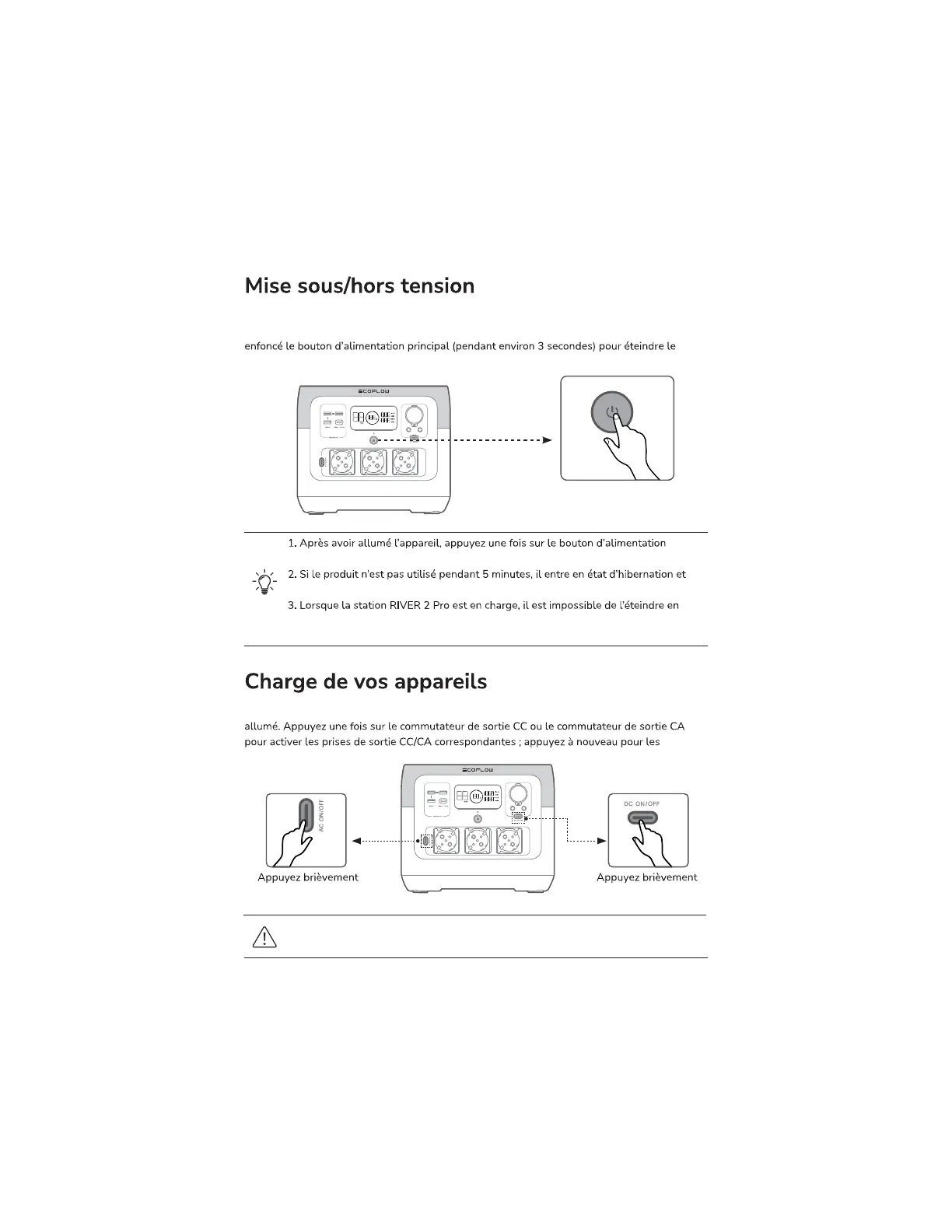 Les ports de sortie USB-A et USB-C sont automatiquement activés lorsque le produit est