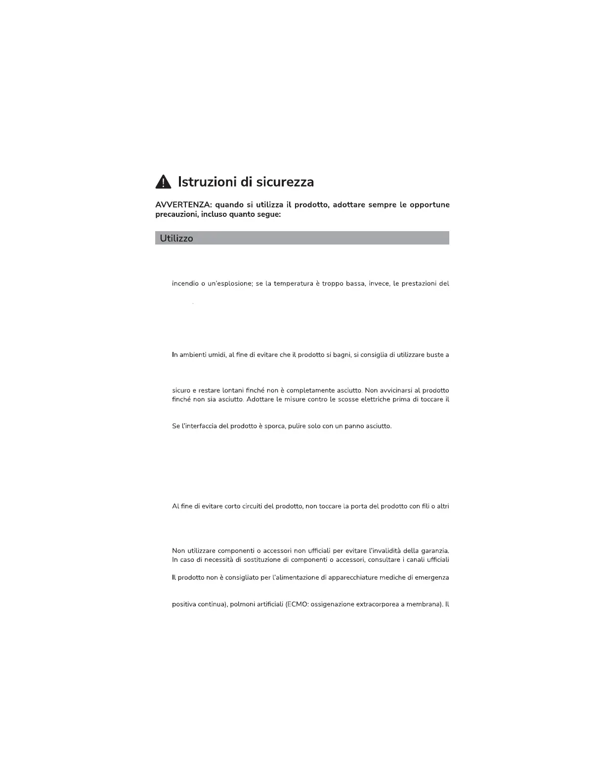 prodotto potrebbero essere notevolmente ridotte o bloccare il funzionamento dello