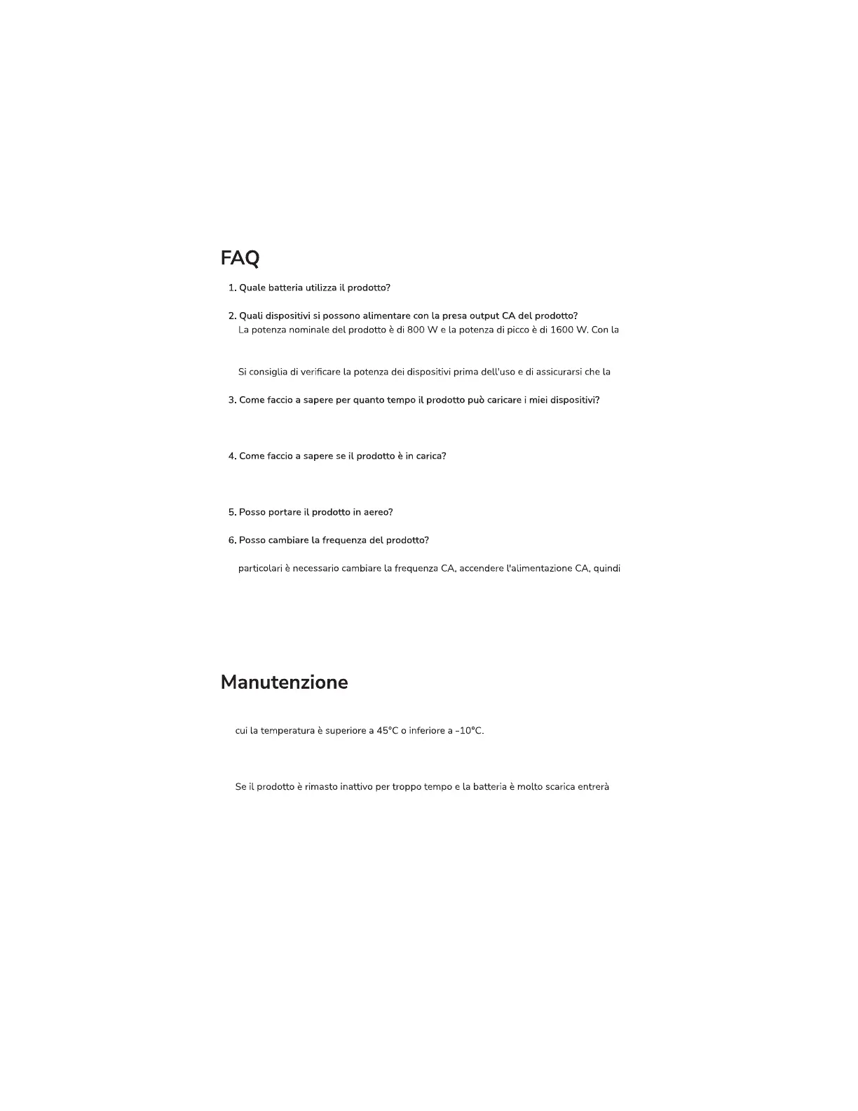 1. Per motivi di sicurezza, non conservare il prodotto per periodi prolungati in un ambiente in