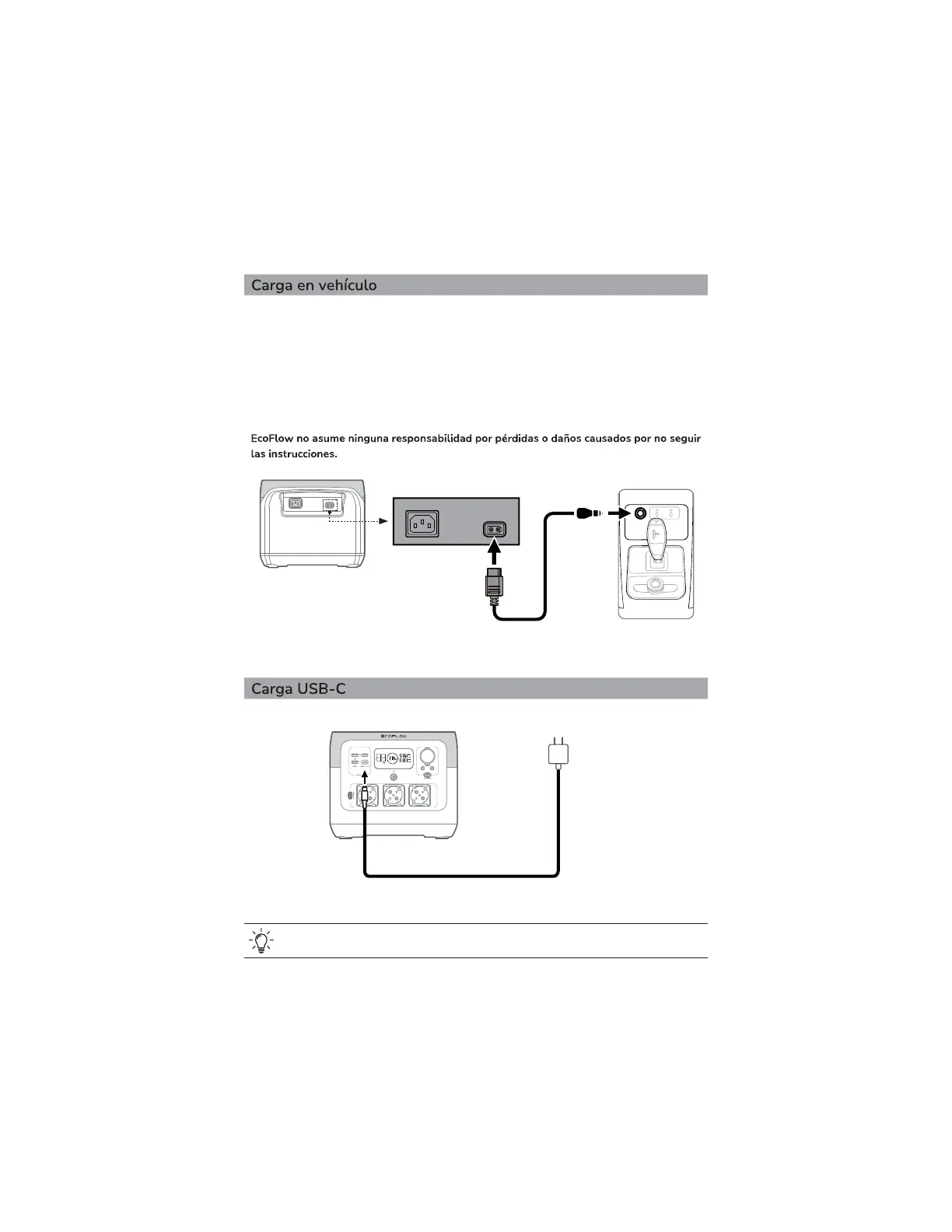 Use el cargador del coche para la carga con el coche ya encendido para evitar que el coche no