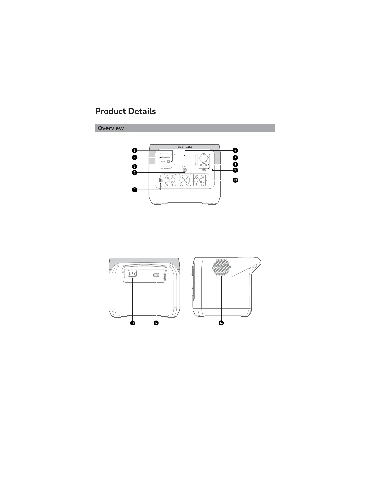 11. X-Stream AC charging input port 12. Solar/Car charging input port