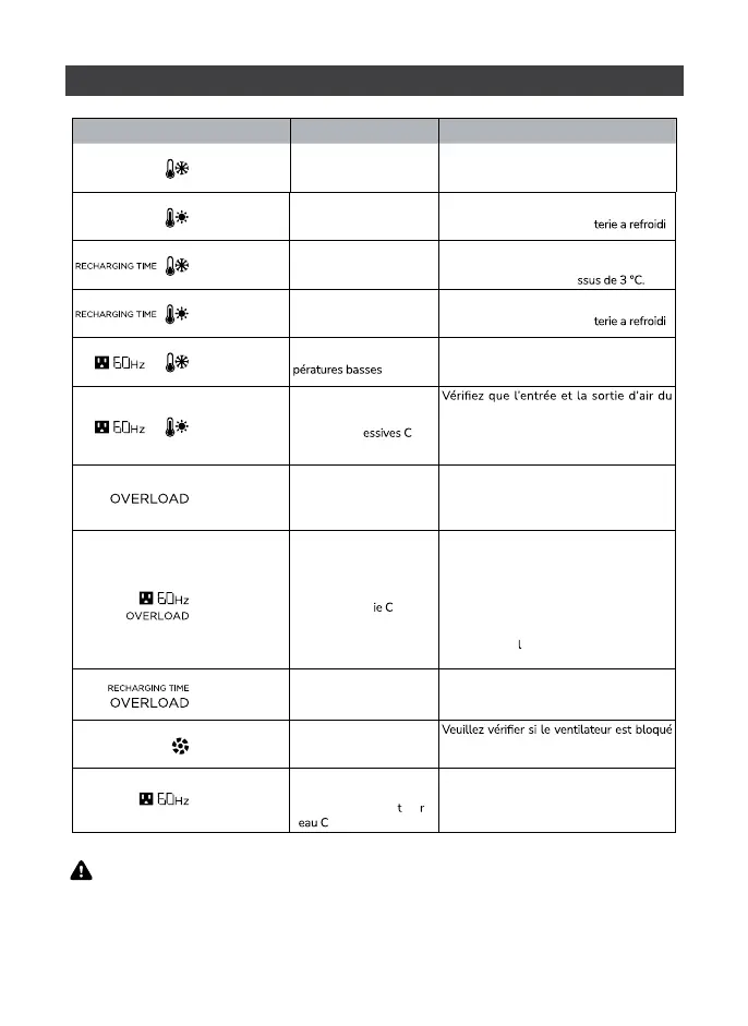 Si une alerte se produit pendant l'utilisation de ce produit et que l'icône d'alerte ne