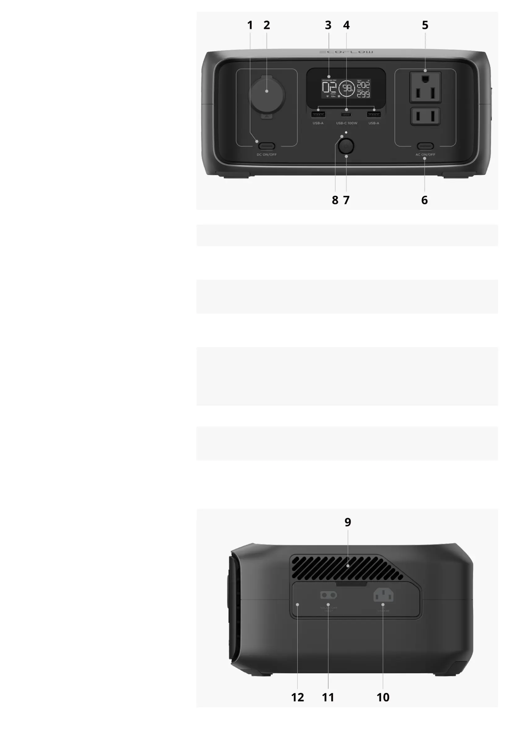 6 AC Output Button Short press once to turn on/off the AC output socket.