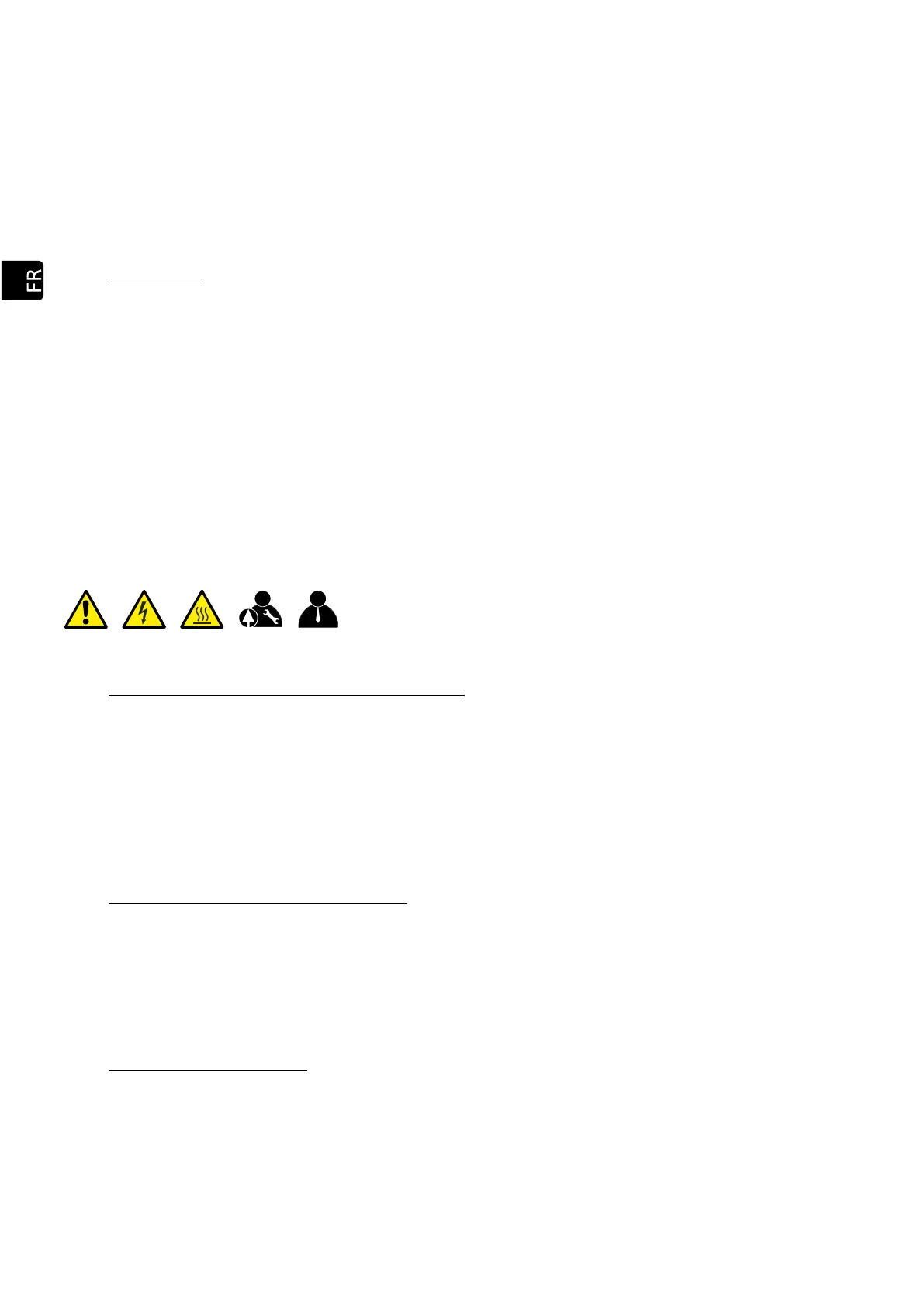 manipulé. Seul un technicien qualifié doit résoudre les éventuels problèmes.