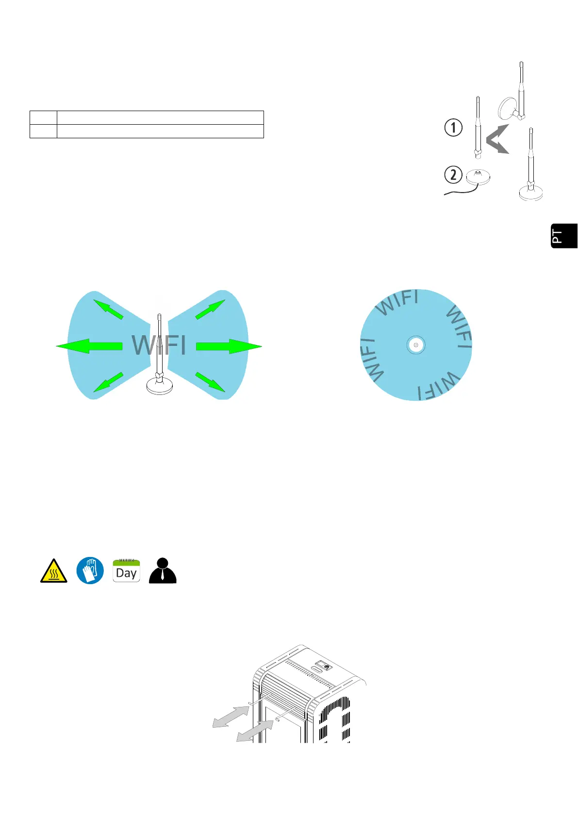 Enrole a antena WiFi à base de ligação com ímã. A referida base irá colada na parte traseira da estufa. Depois