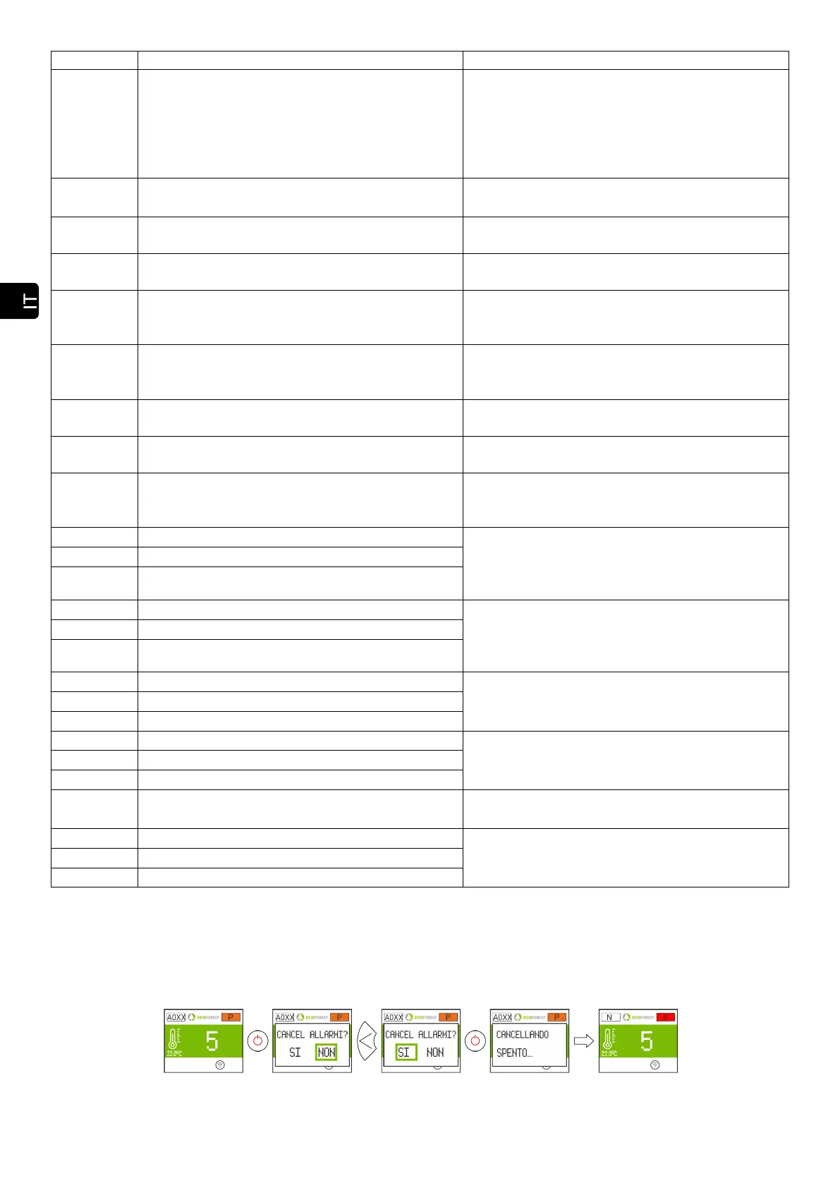 Il processo di spegnimento con allarme è variabile a seconda dello stato precedente della macchina, della