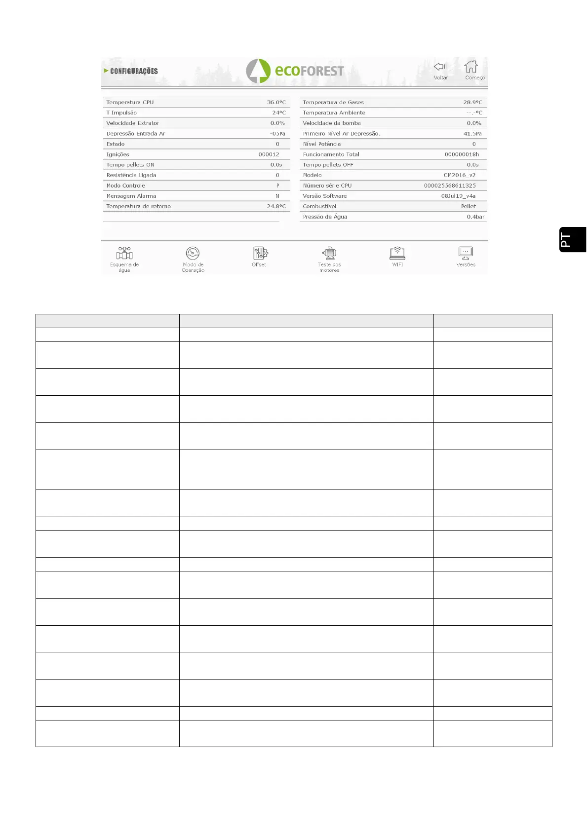 T. Pellet ON Segundos durante os que funciona o motor sem fim.