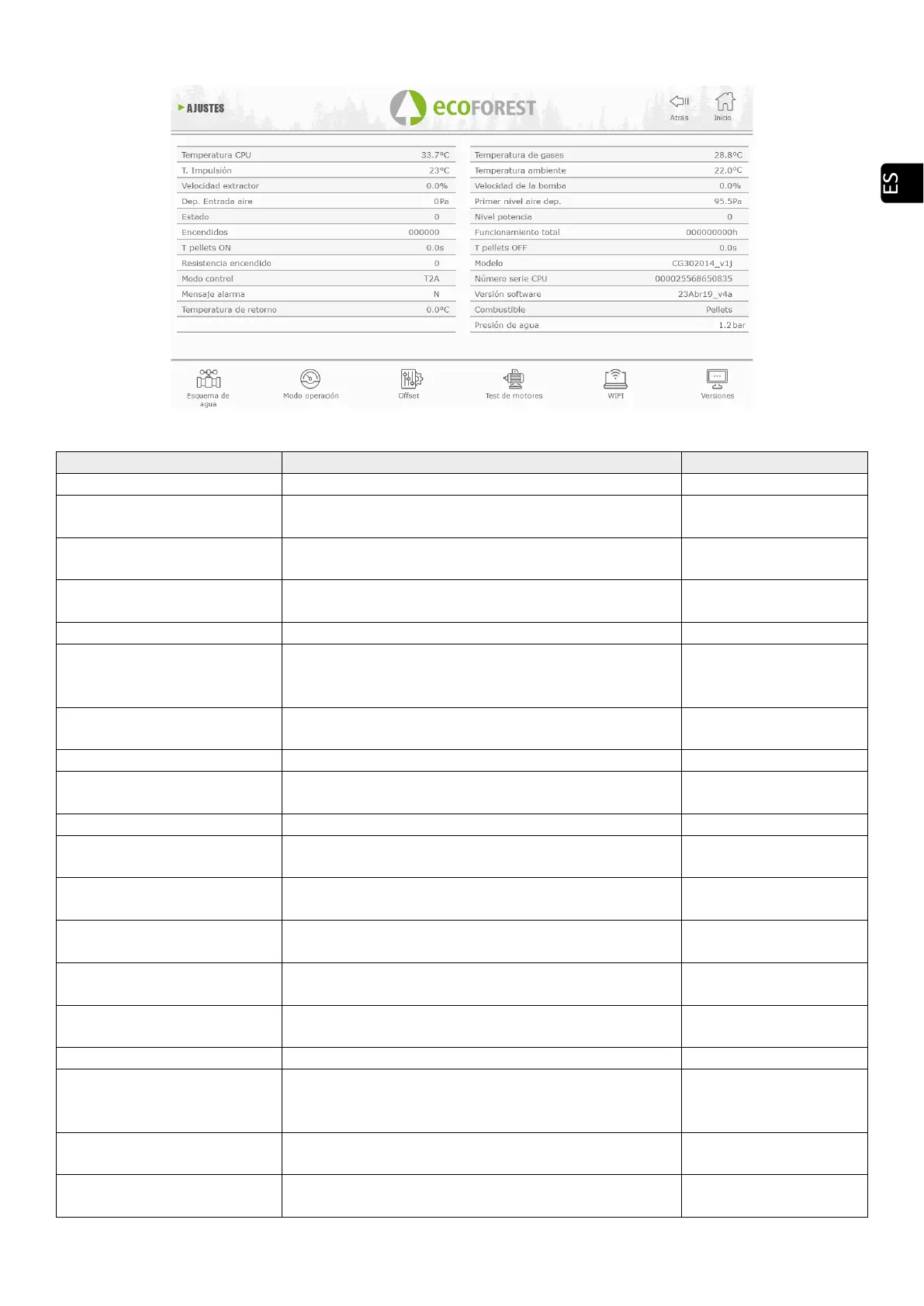 Temperatura de gases Temperatura en la salida de gases.