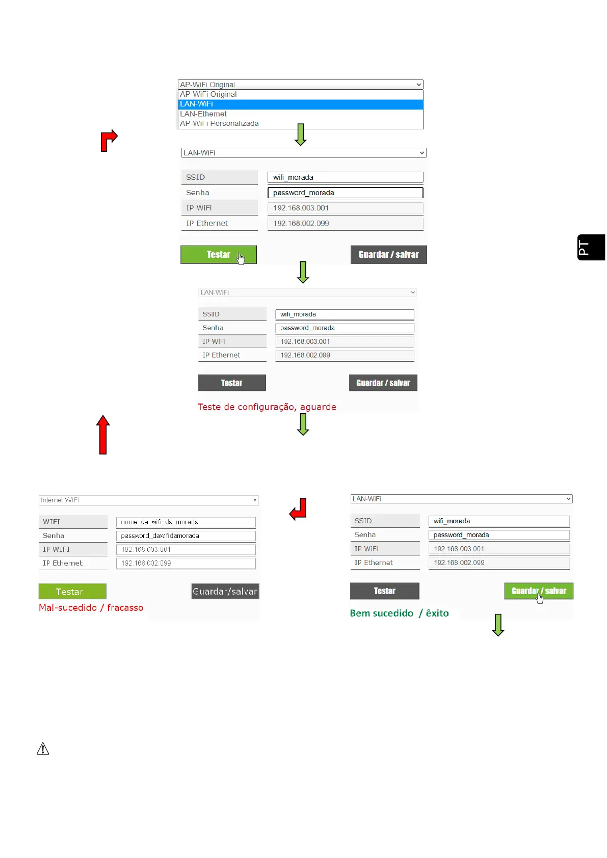 Pressionando 'Test' , a rede WiFi pode desaparecer por um tempo, o navegador pode mostrar-nos "falha de