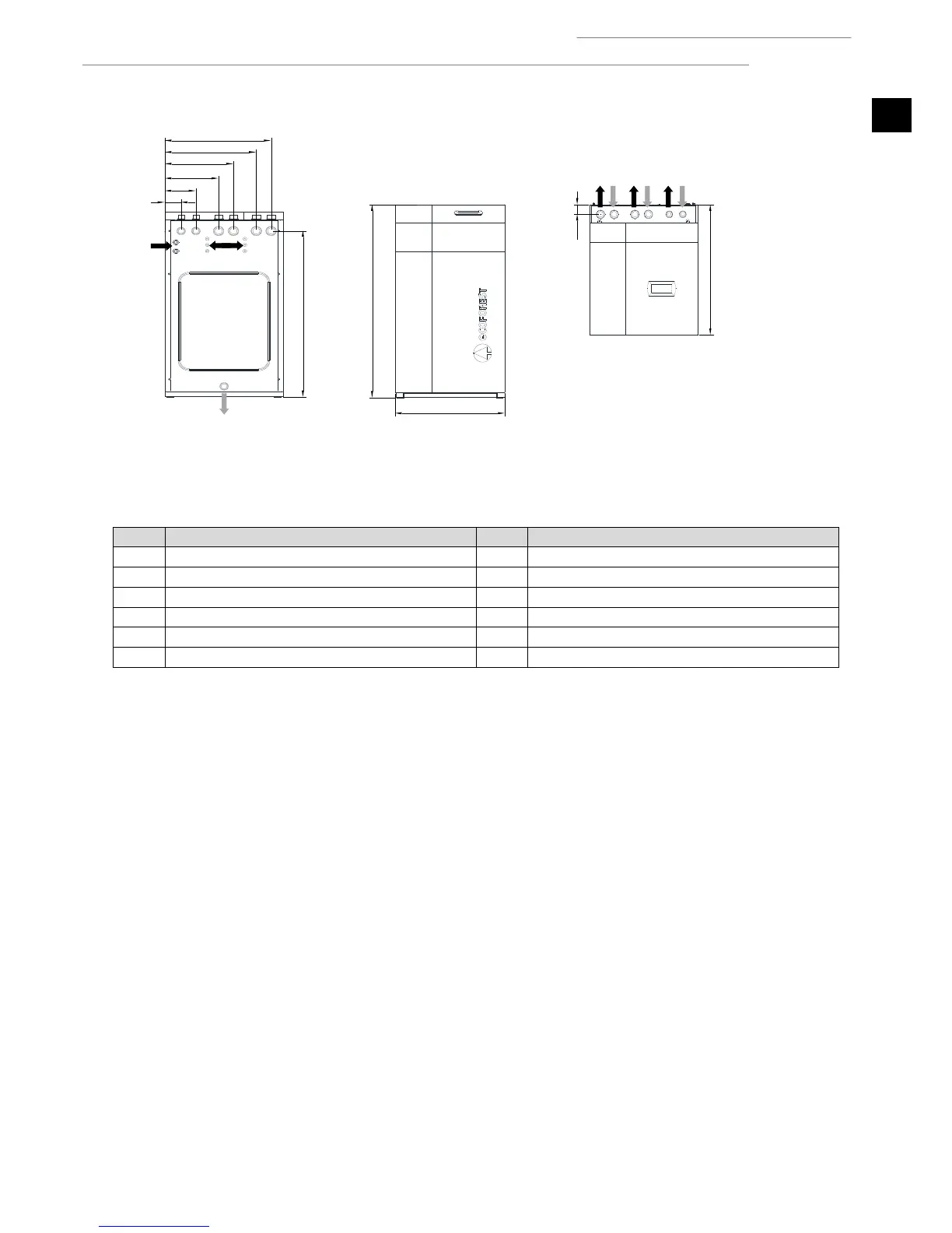 Figure 1.2. Overall dimensions and hydraulic connections of the ecoGEO Basic model (Amounts in mm).