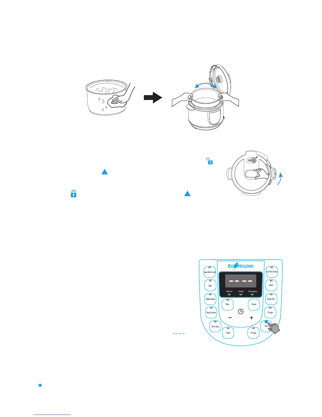 Hold the lid handle and put the lid on the cooker, with the